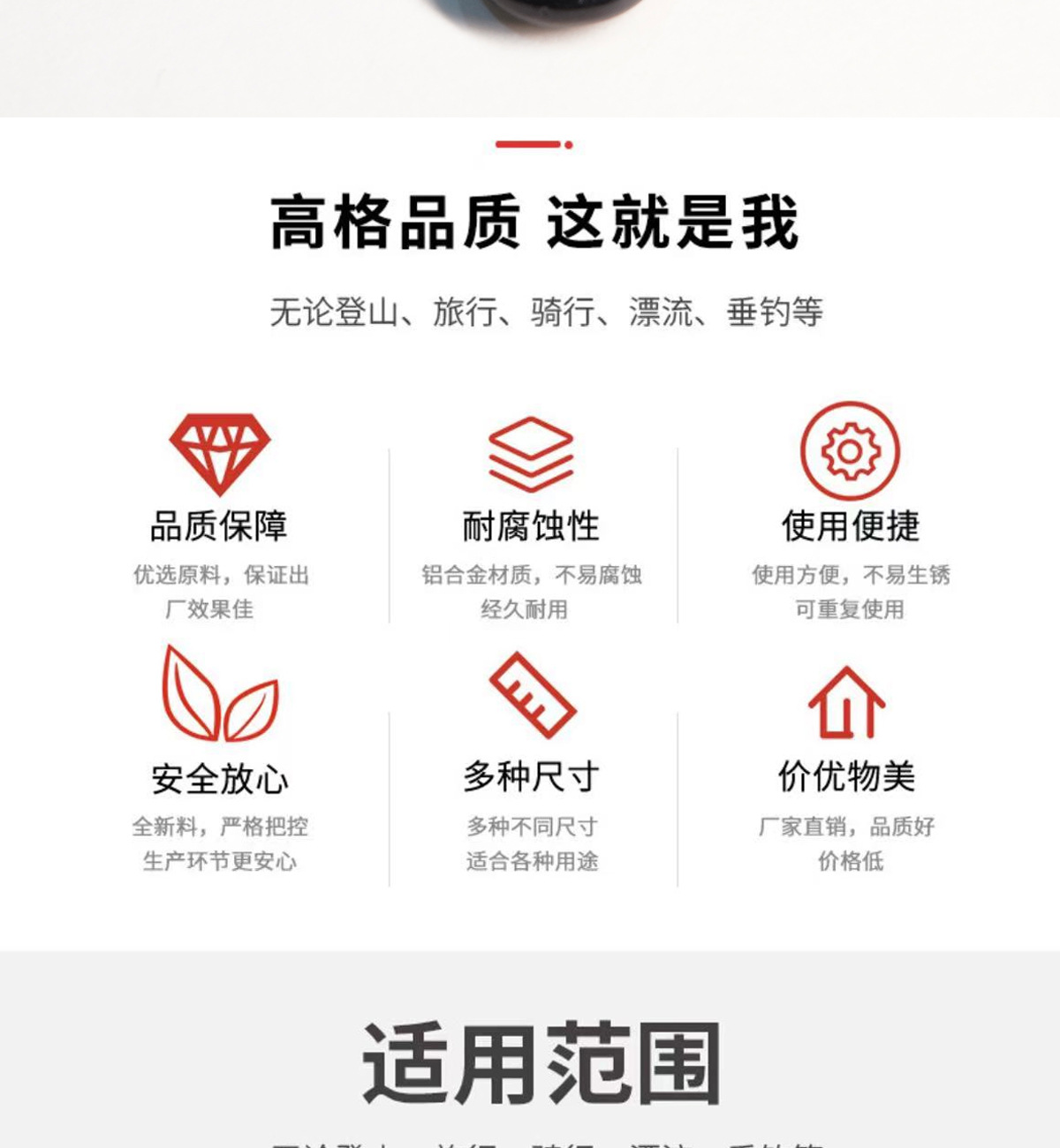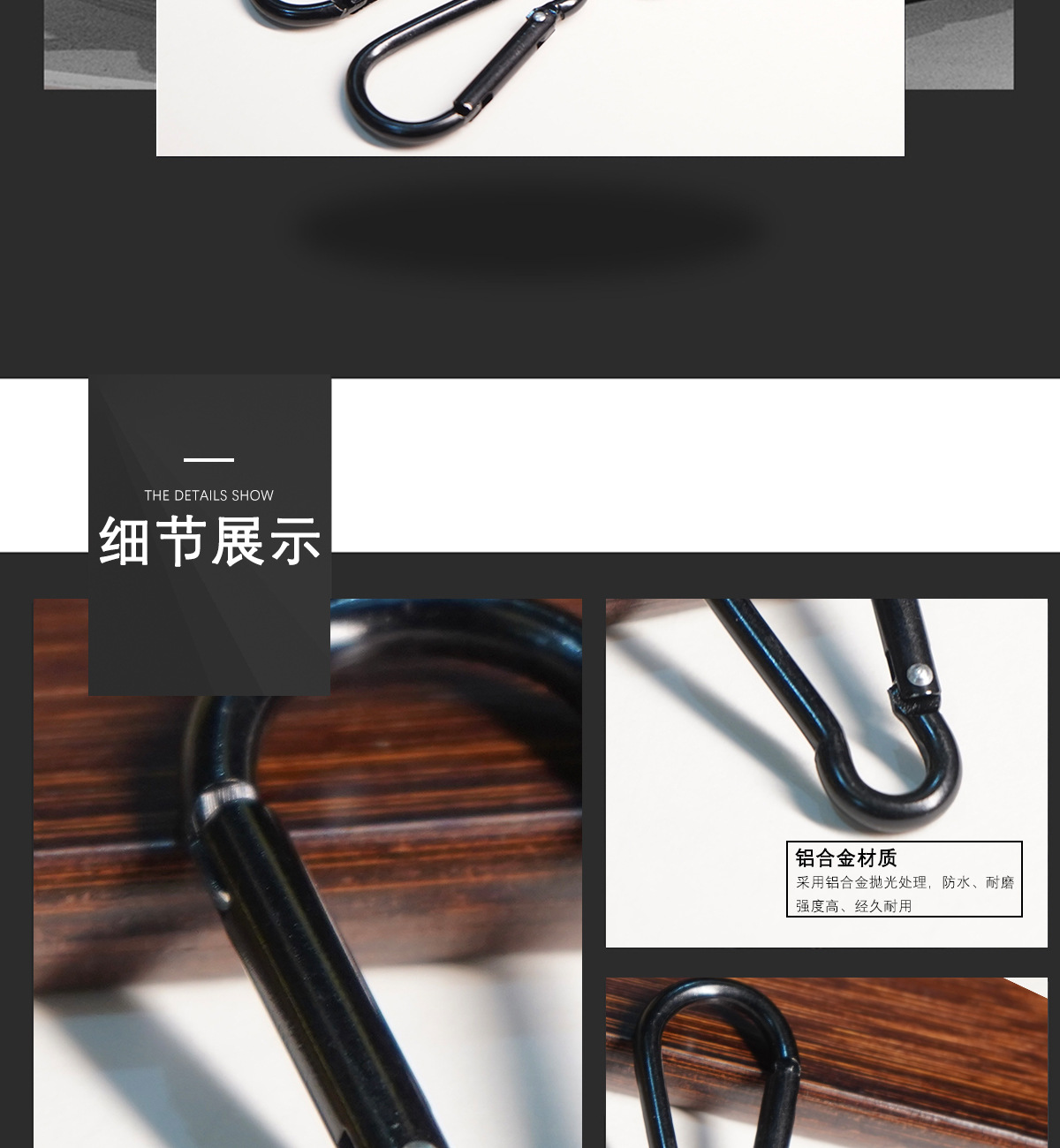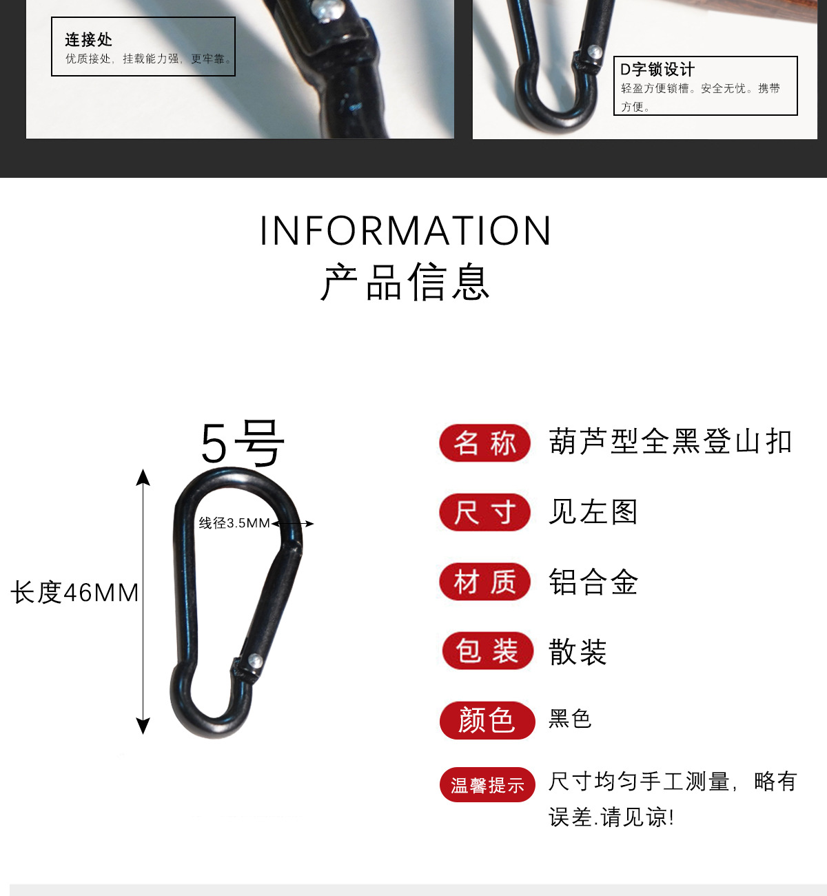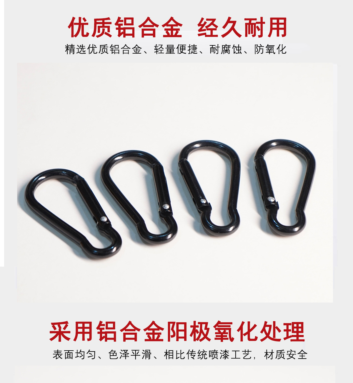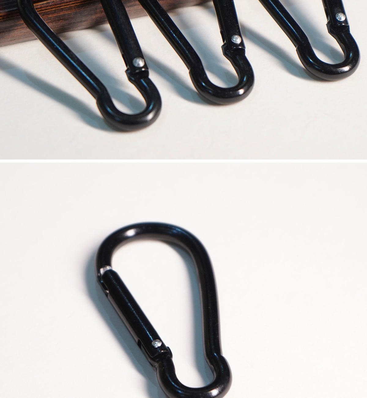 공장 도매 5 번 조롱박 유형 모든 검은 색 46MM 카라비너 텐트 야외 알루미늄 합금 후크 배낭 빠른 교수형