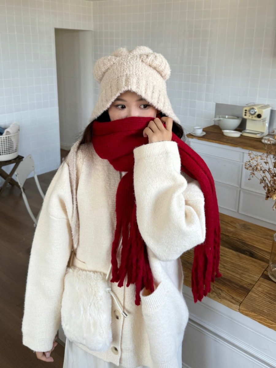 한국 드라마 어니 레드 스카프 여자 겨울 한국 스타일 크리스마스 니트 2024 새로운 두꺼운 따뜻한 스카프