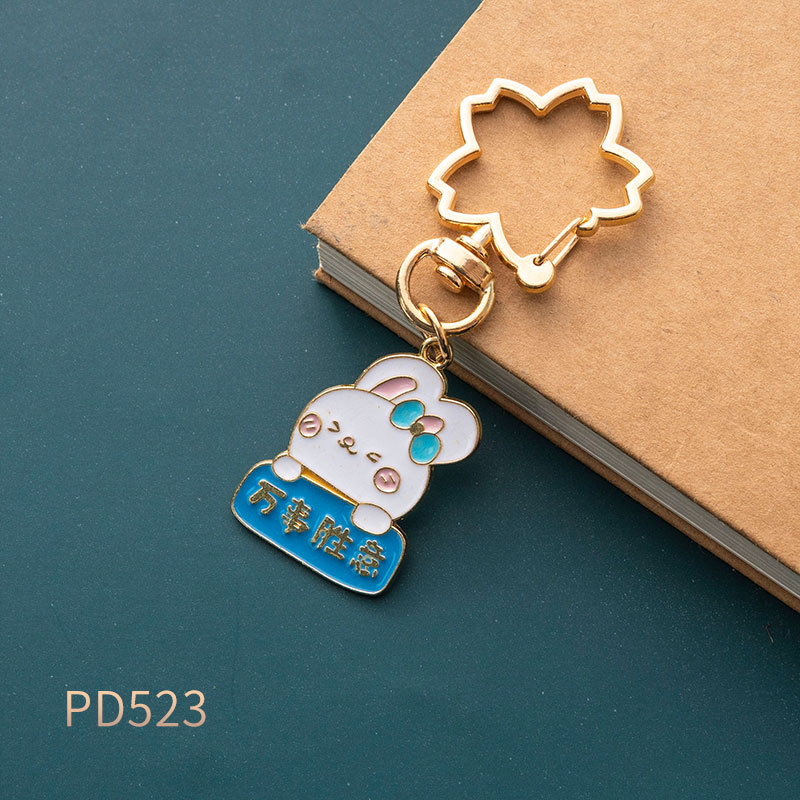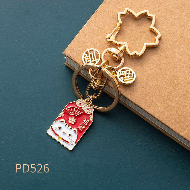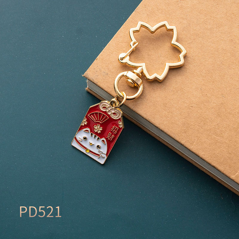 벚꽃 열쇠 고리 매달려 기름 떨어지는 펜던트 3 피스 세트 금속 텍스트 아름다운 의미 가방 펜던트 문화 창조적 인 작은 선물