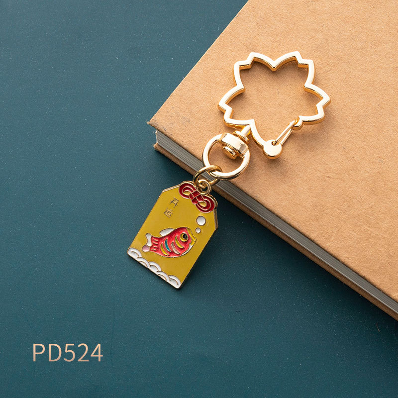 벚꽃 열쇠 고리 매달려 기름 떨어지는 펜던트 3 피스 세트 금속 텍스트 아름다운 의미 가방 펜던트 문화 창조적 인 작은 선물스토어 가기