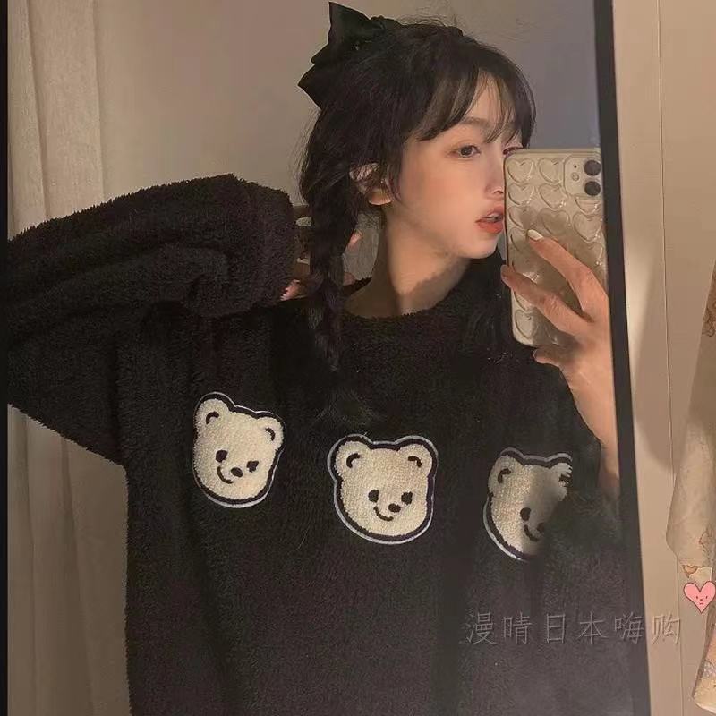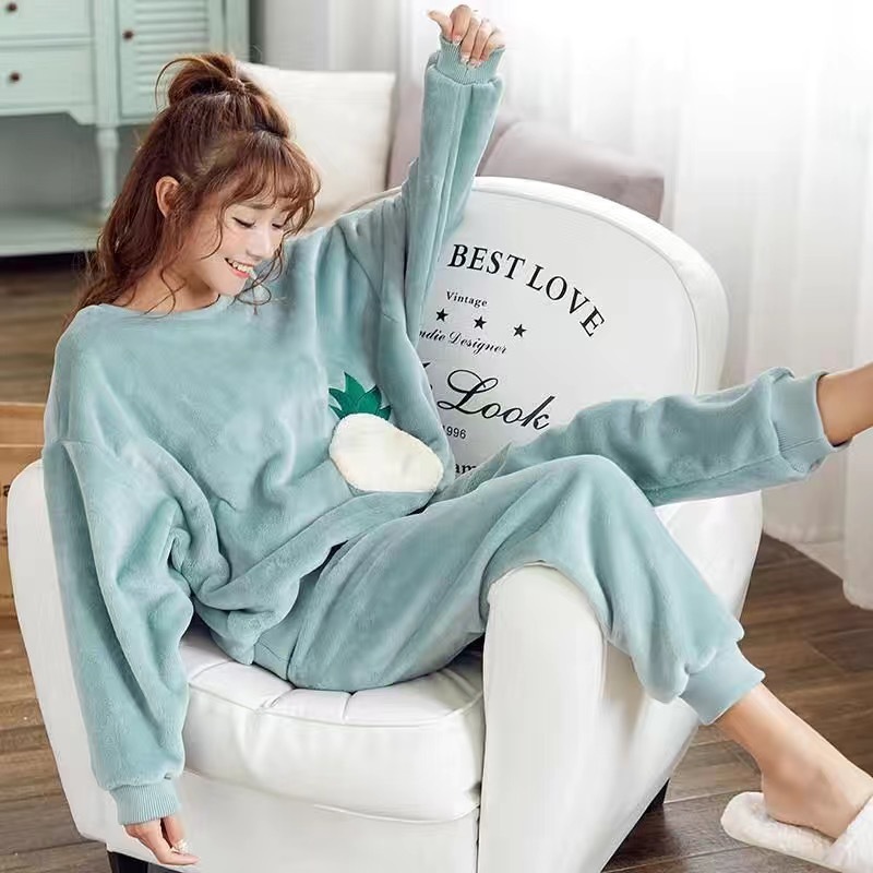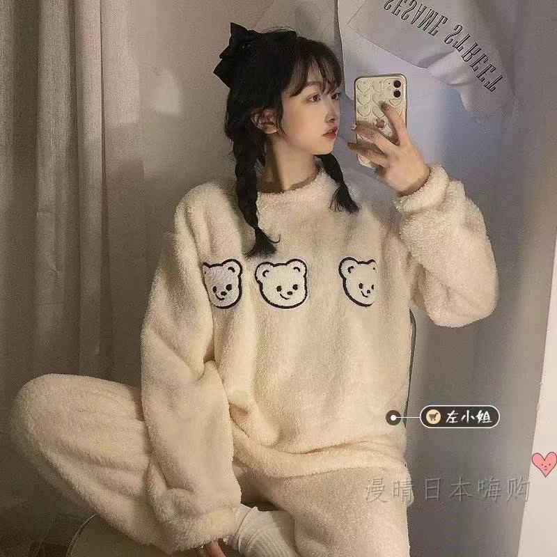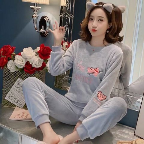 가을과 겨울 두꺼운 따뜻한 플란넬 파자마 여성의 겨울 긴 소매 산호 양털 귀여운 만화 숙녀 홈 의류 세트스토어 가기