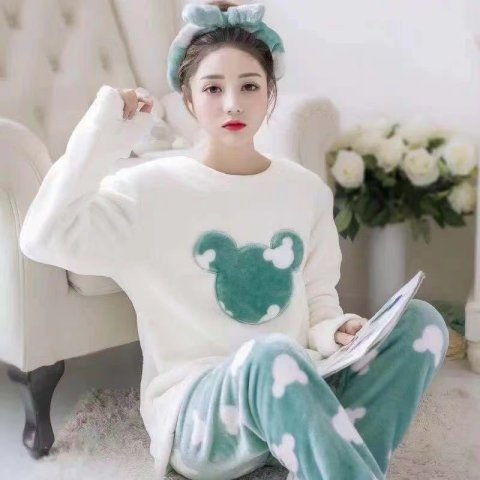 가을과 겨울 두꺼운 따뜻한 플란넬 파자마 여성의 겨울 긴 소매 산호 양털 귀여운 만화 숙녀 홈 의류 세트