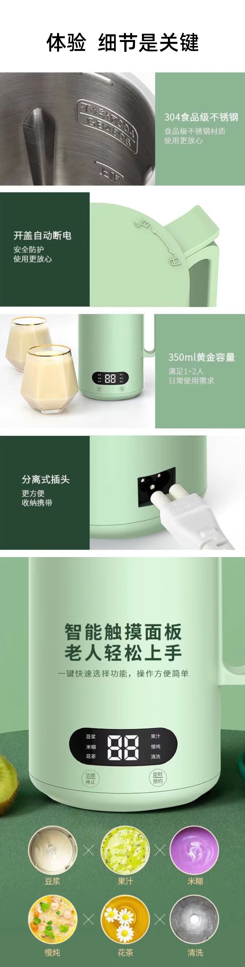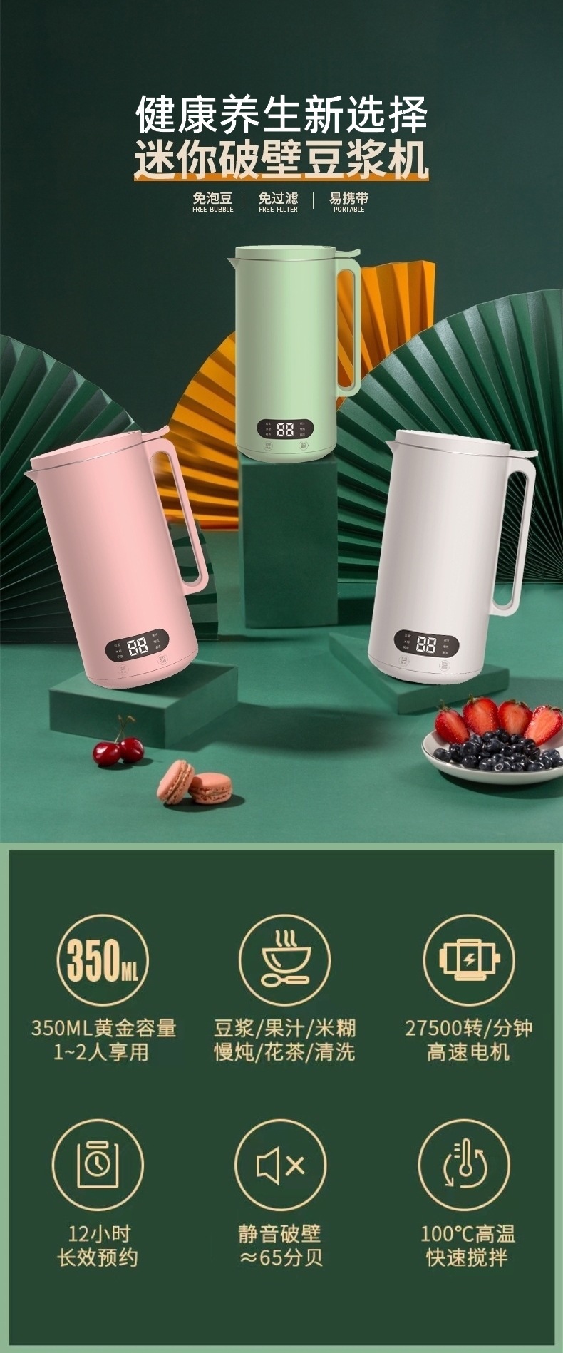 미니 두유 제조기 110V 미국형 전기 주전자 블렌더 선물용 350ml 다기능 주스 및 요리기구 해외 판매