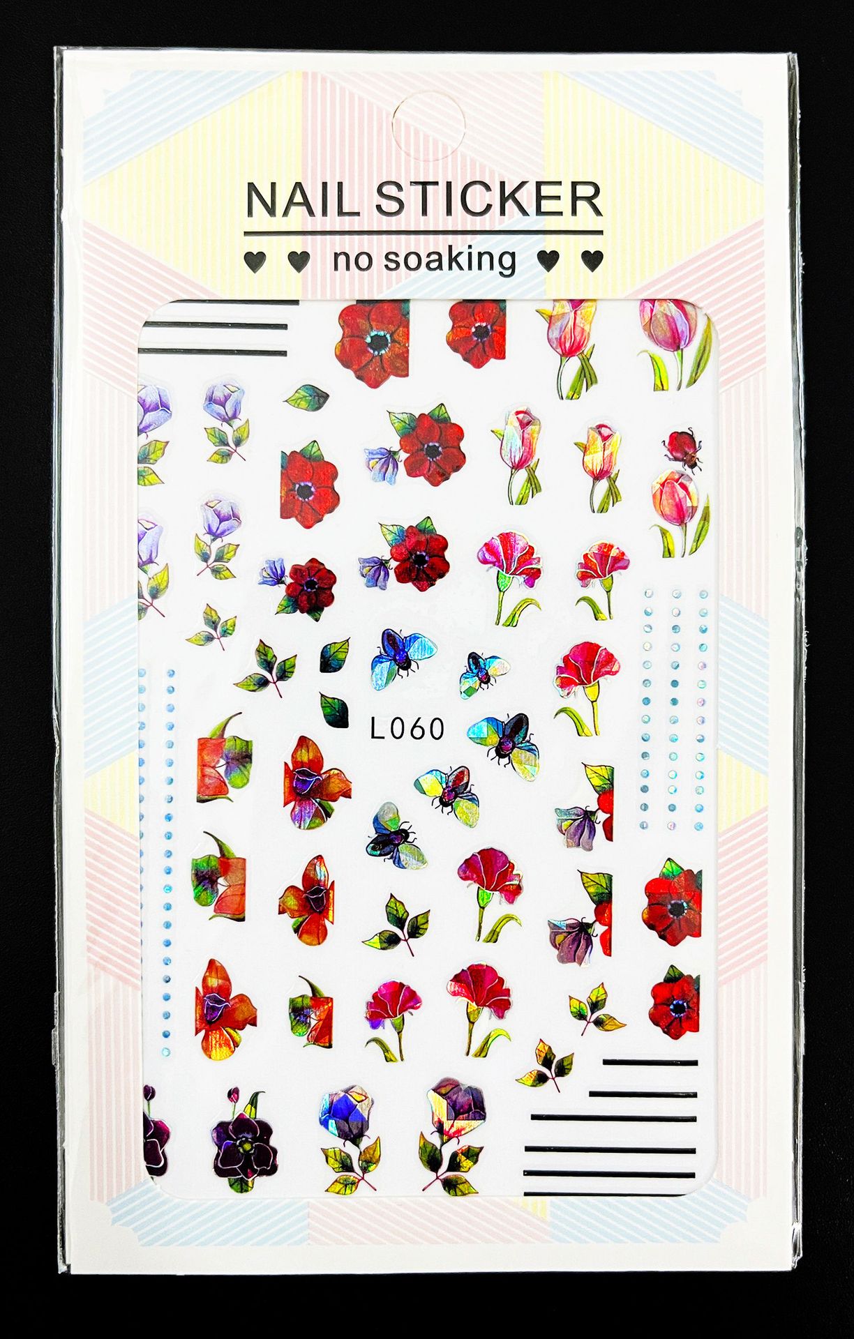 새로운 국경 네일 데칼 레이저 신선한 식물 꽃 시리즈 이상의 L057-066 교차 선택 접착제