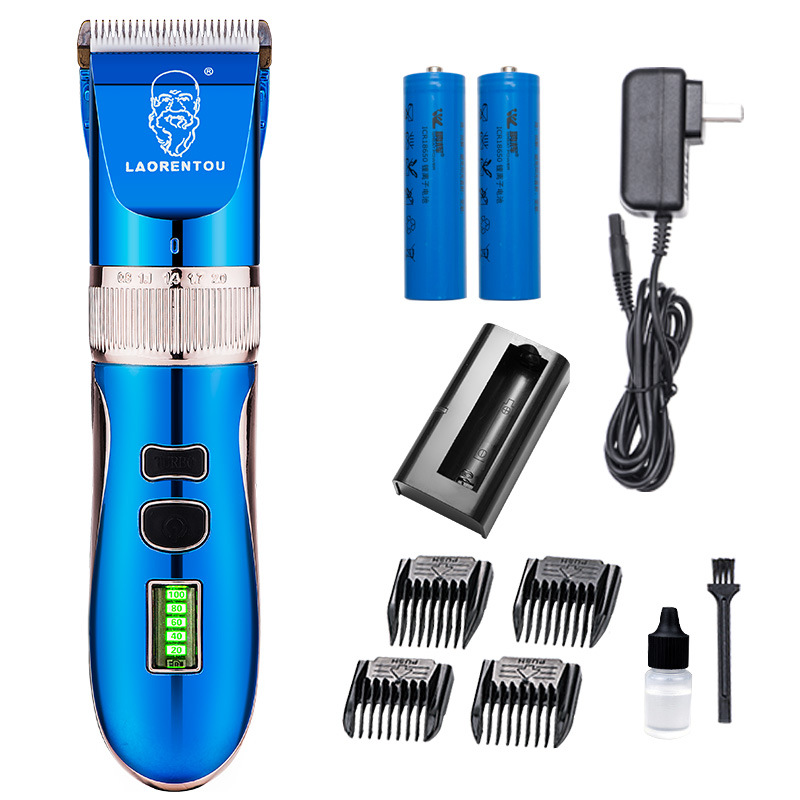 产品配件:包装盒,说明书,4个定位梳,,一个充电器,一瓶润滑油,一只清洁刷,备用锂电池。