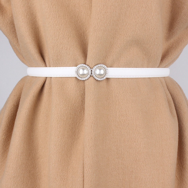 여성 한국식 올매치 가죽 얇은 벨트 장식 스커트 진주 벨트 모조 다이아몬드 원피스 세트 액세서리