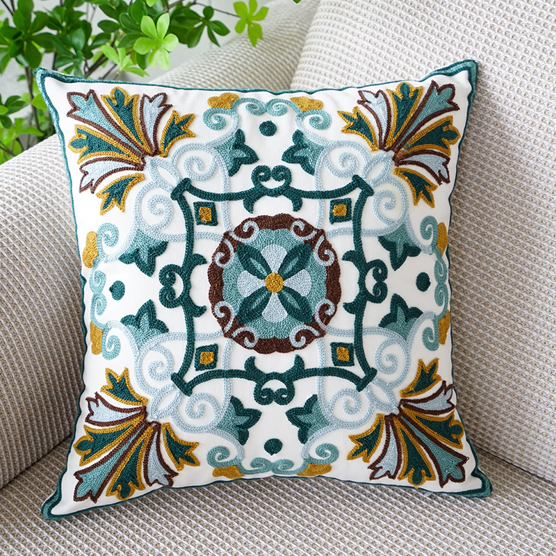 스타일 베개 거실 소파 타월 자수 베개 케이스 식물 꽃 쿠션 베이 창 베개 인 사용자 정의 크로스 보더