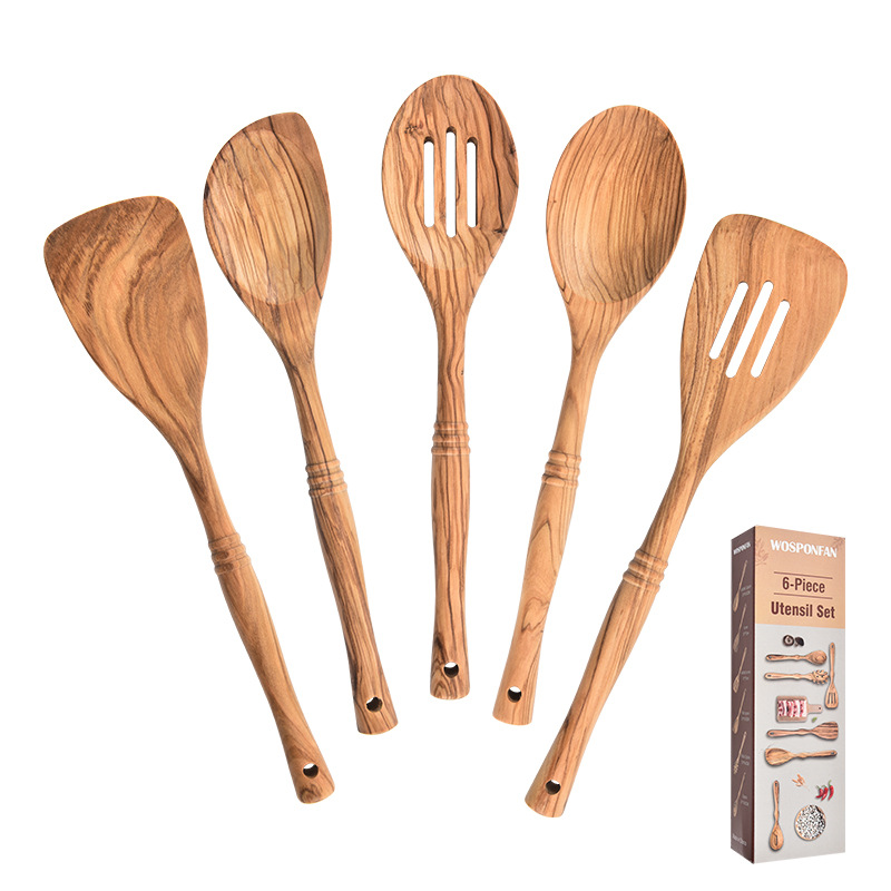 올리브 나무 식기 5 종 세트 가정용 주방 붙지 않는 팬 단단한 나무 볶음 삽 요리 스푼 삽 도구 세트