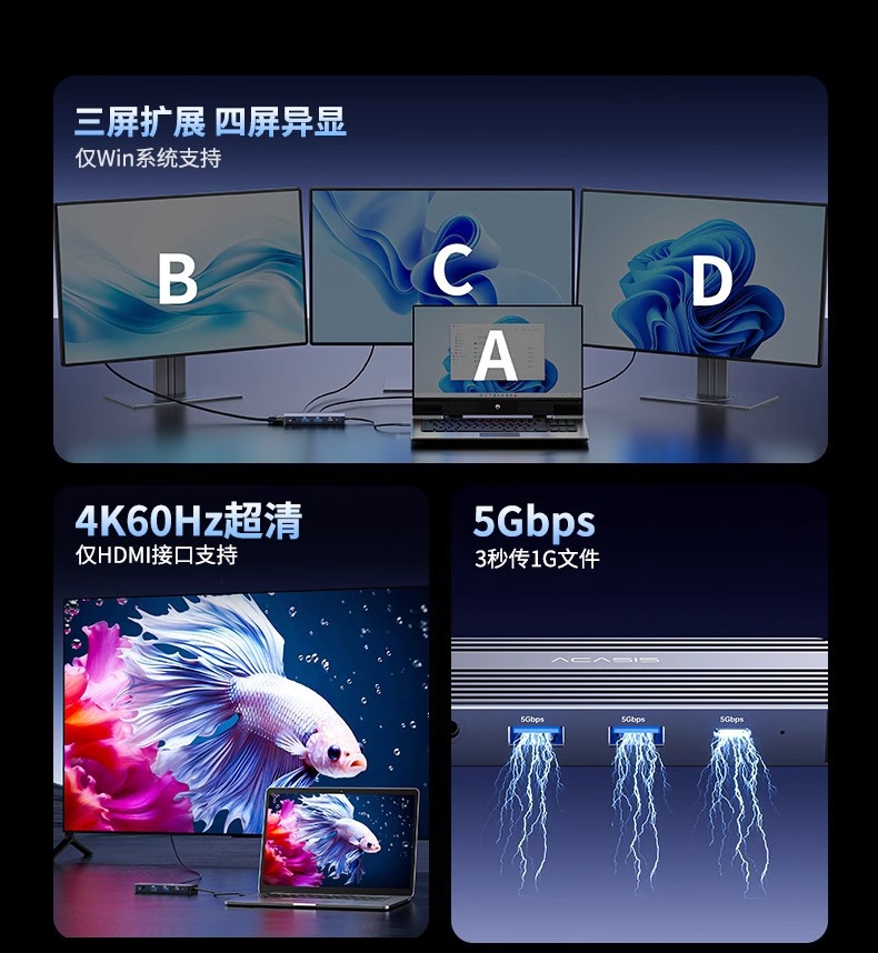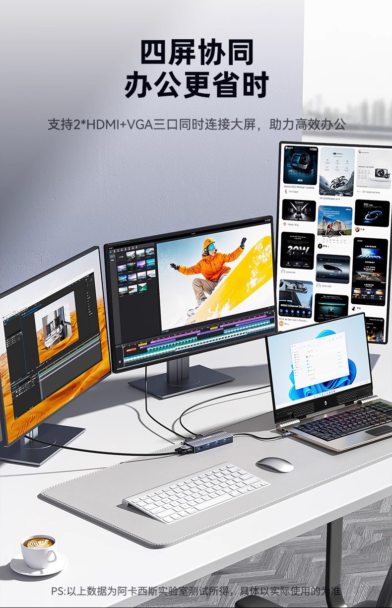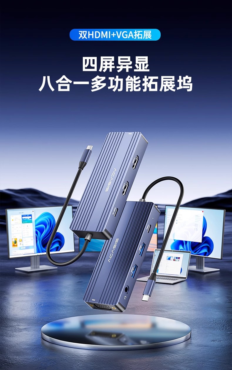 아카시스 타입-C 도킹 스테이션 1대8 VGA 기가비트 네트워크 포트 PD 4화면 독립 디스플레이 노트북스토어 가기