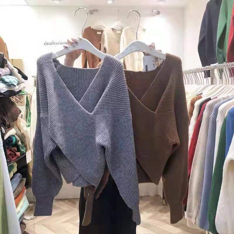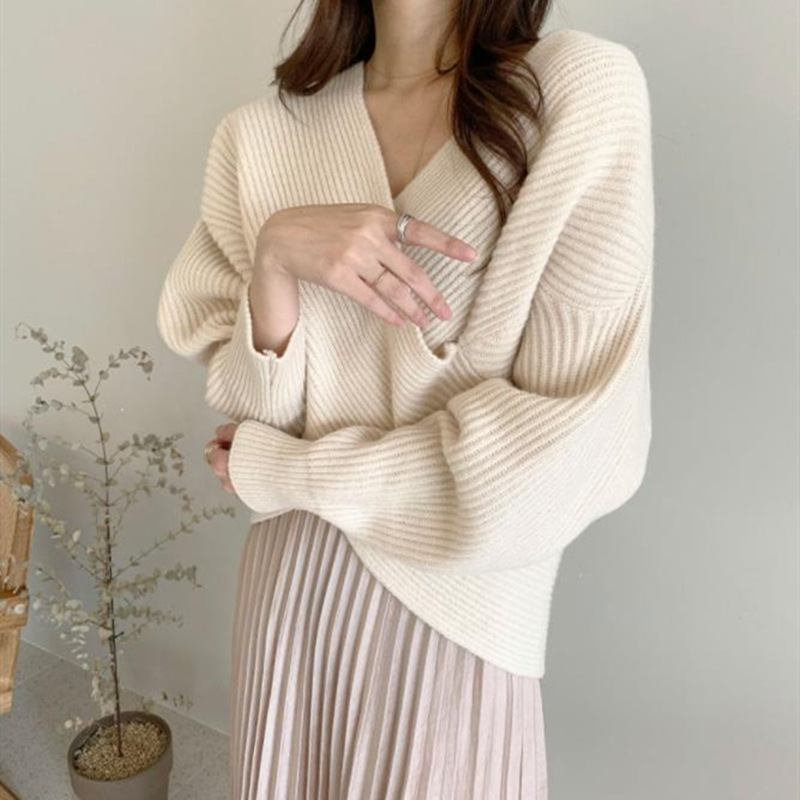 크로스 니트 스웨터 디자인 틈새 우아한 심플 스웨터 여성용 2022 가을과 겨울 게으른 스타일 루즈한 모든 매치 탑스토어 가기