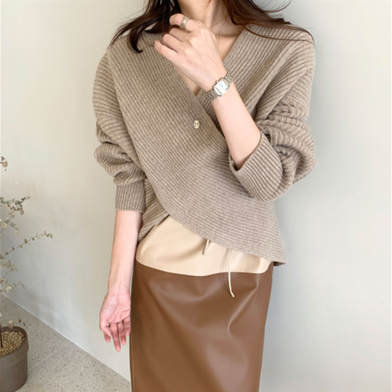 크로스 니트 스웨터 디자인 틈새 우아한 심플 스웨터 여성용 2022 가을과 겨울 게으른 스타일 루즈한 모든 매치 탑