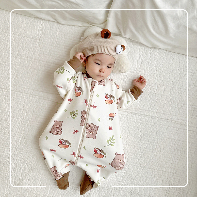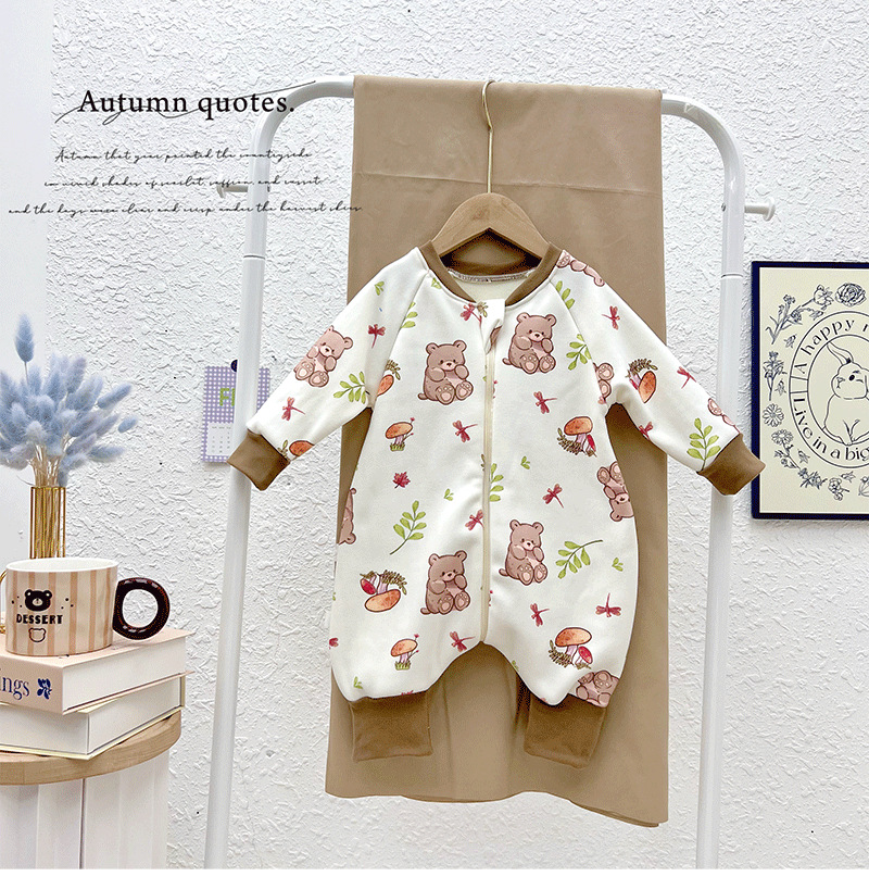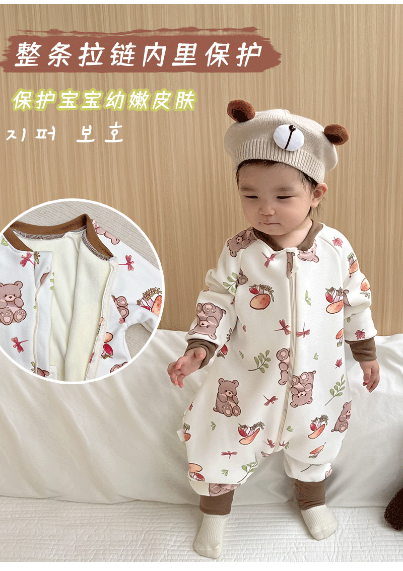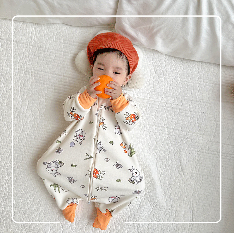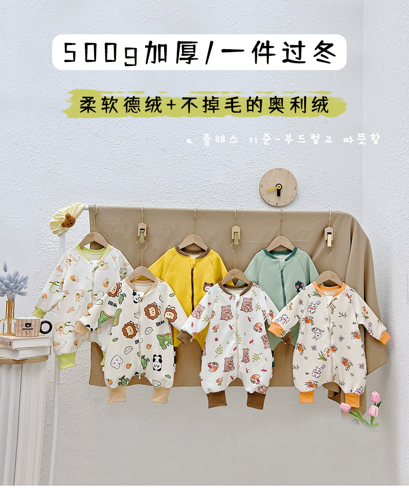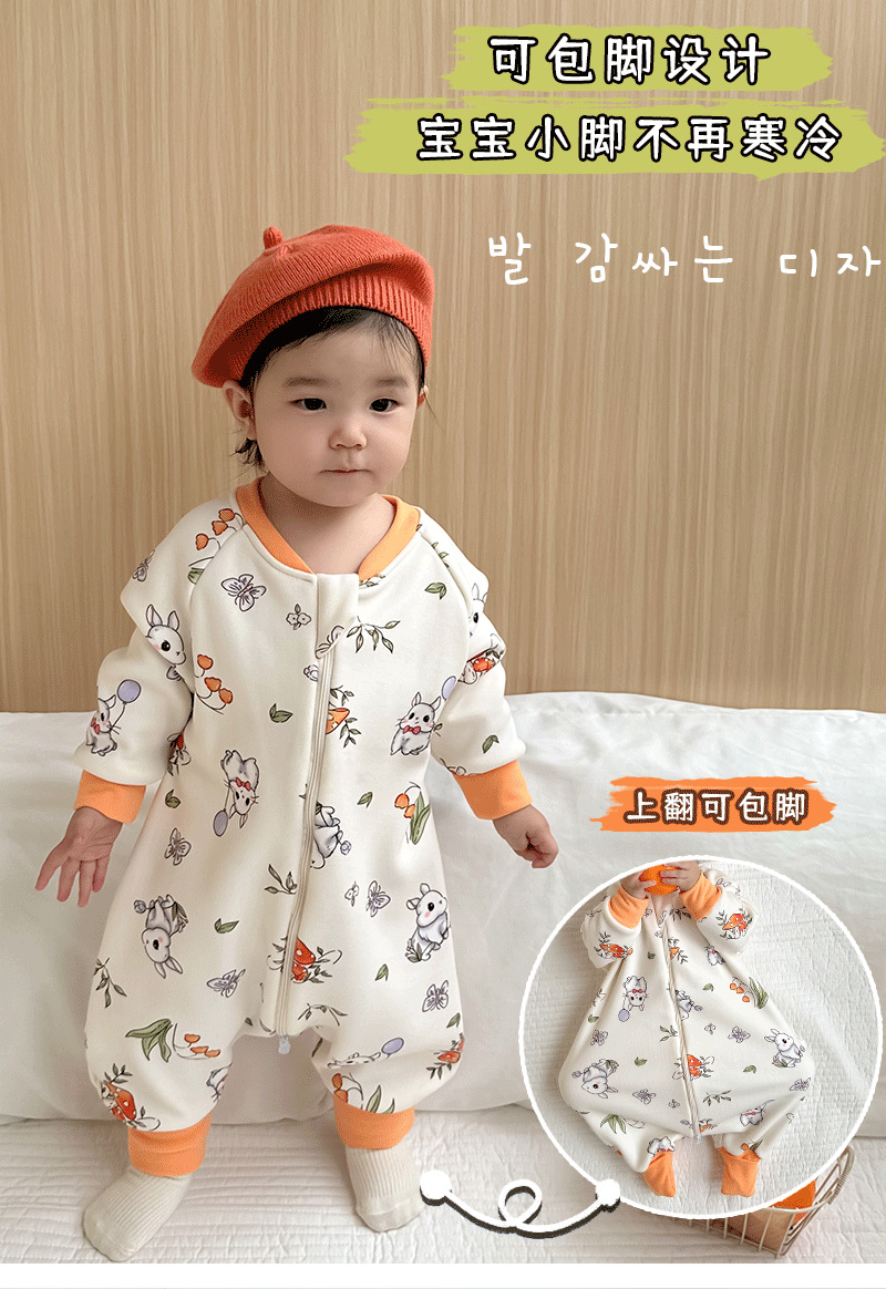 새로운 아기 기모 침낭 아기 가을과 겨울 스타일 줄 지어 벨벳 잠옷 어린이 겨울 킥 방지 따뜻한 가정 옷스토어 가기