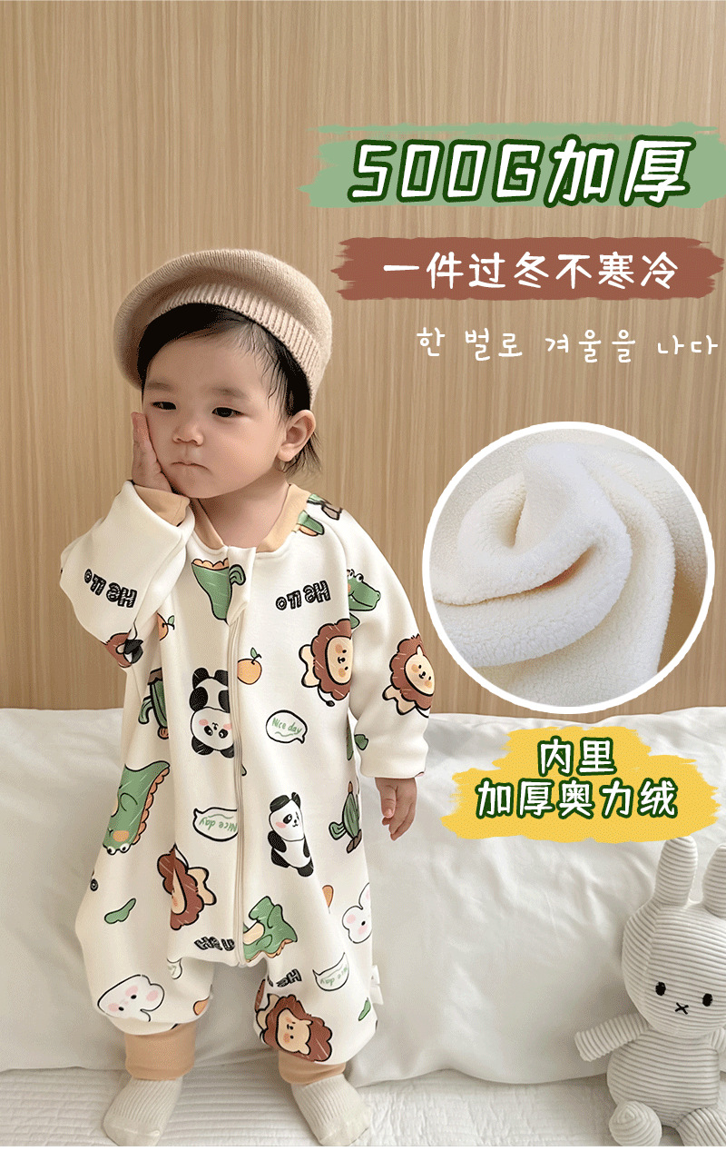 새로운 아기 기모 침낭 아기 가을과 겨울 스타일 줄 지어 벨벳 잠옷 어린이 겨울 킥 방지 따뜻한 가정 옷