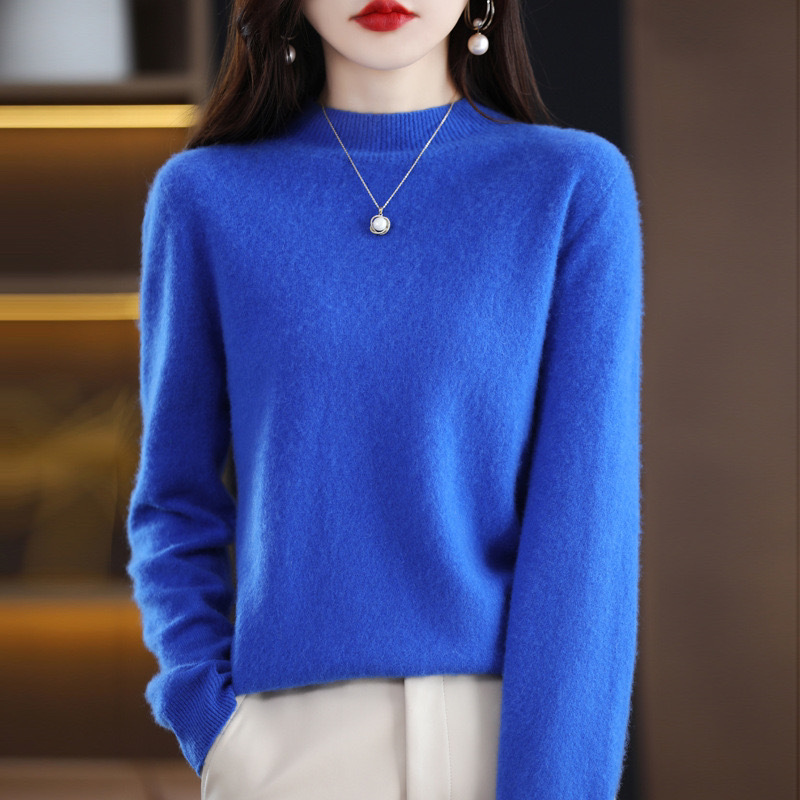 Xu Tong 하프 터틀넥 스웨터, 긴팔 풀오버, 베이스 레이어, 도시 여성 가을 겨울 따뜻한 루즈한 스웨터, 솔리드 컬러
