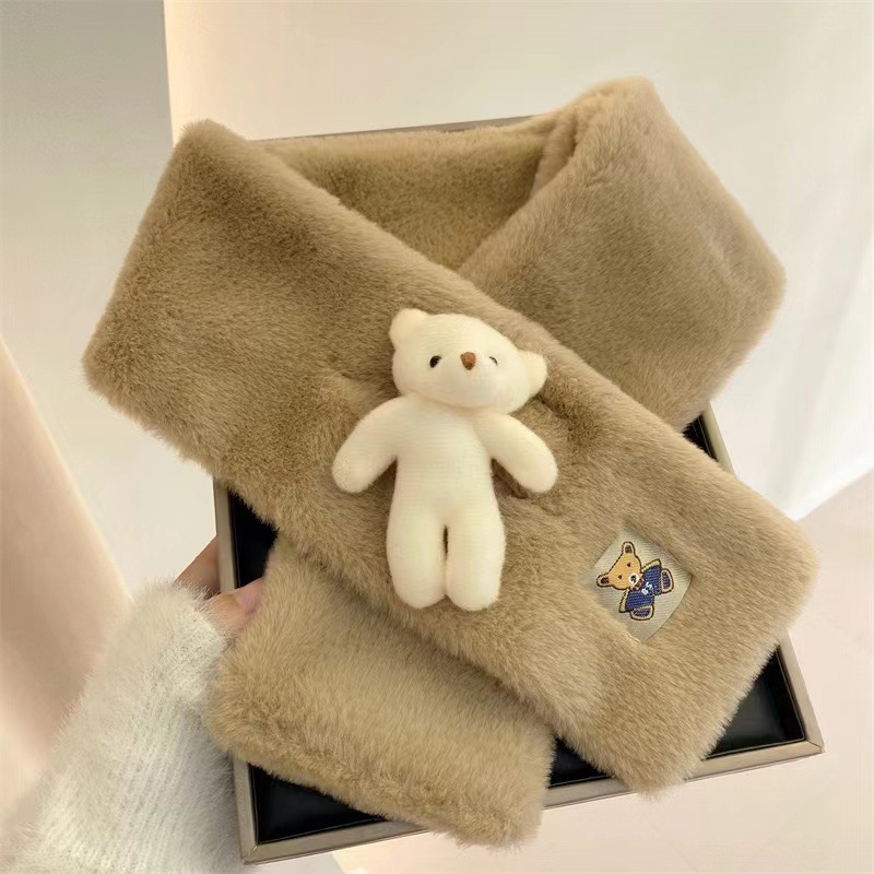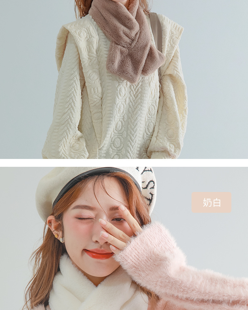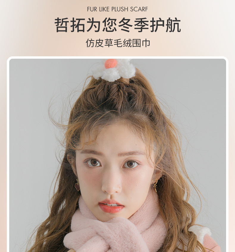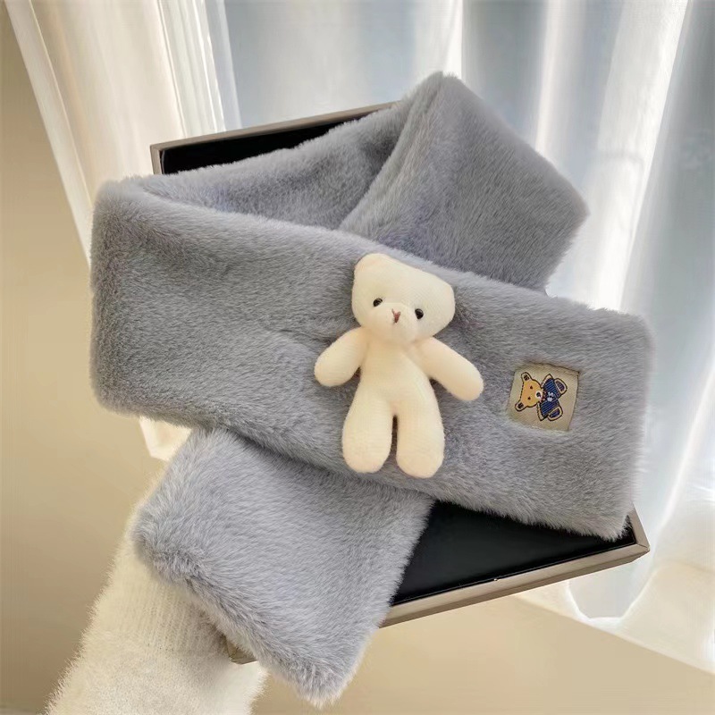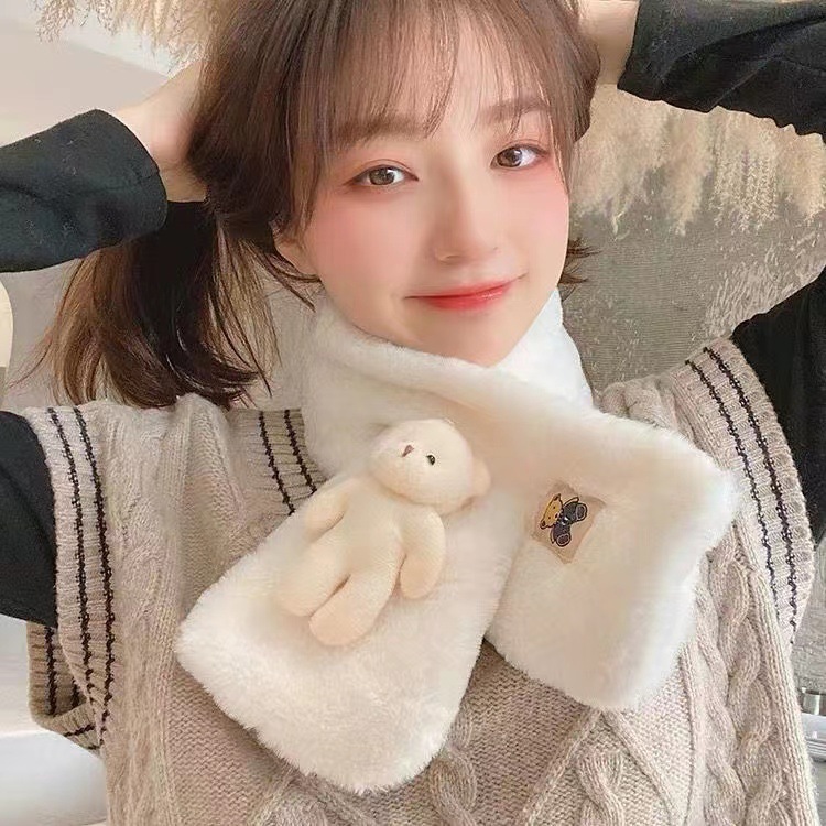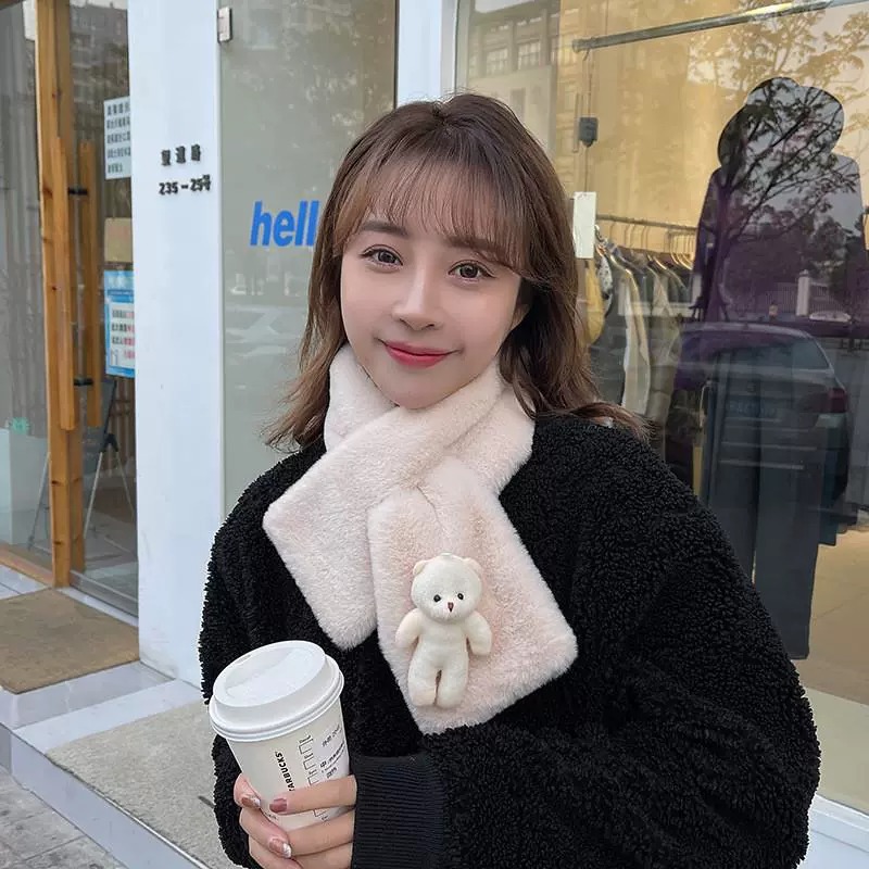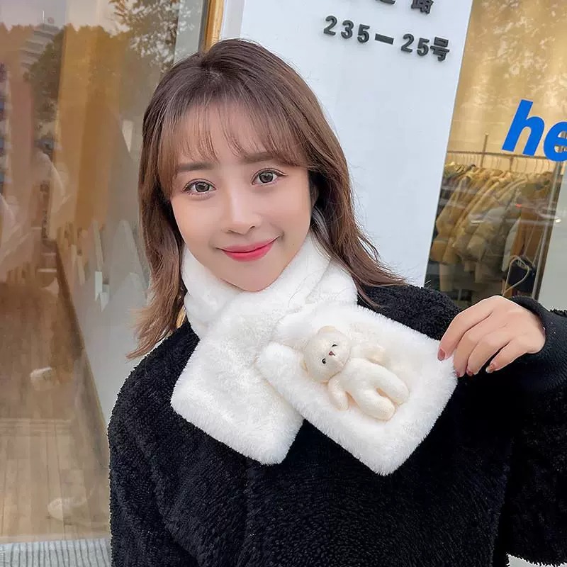 작은 곰 목도리 겨울용 귀여운 단색 모조 토끼털 야외 라이딩 방풍 방한 보온 중간 길이 목 보호 스카프