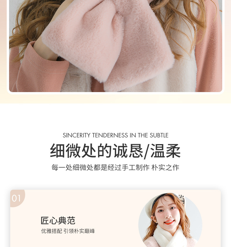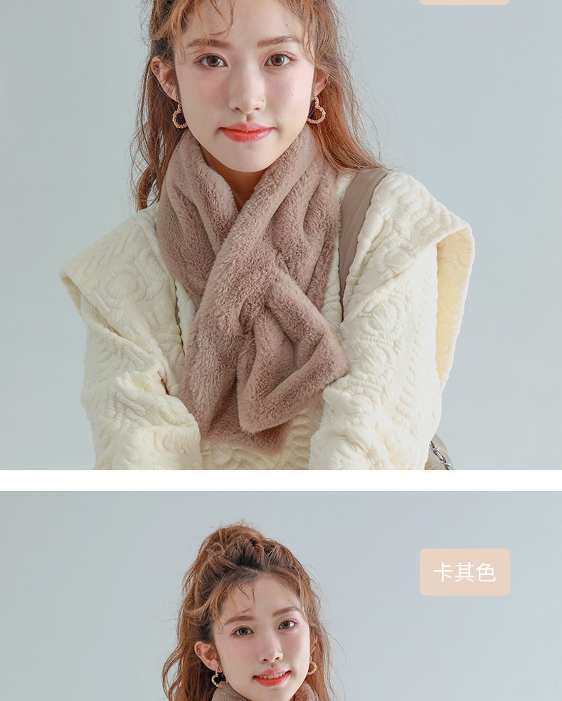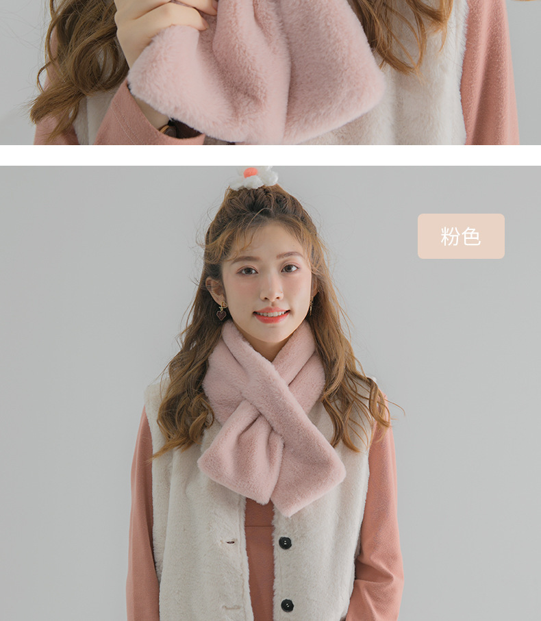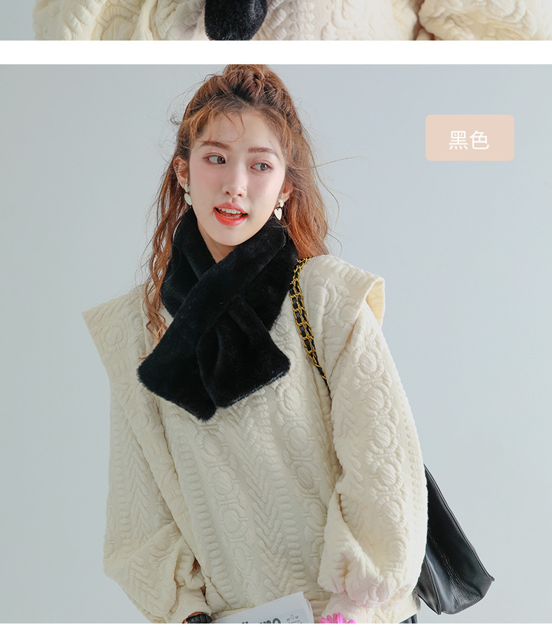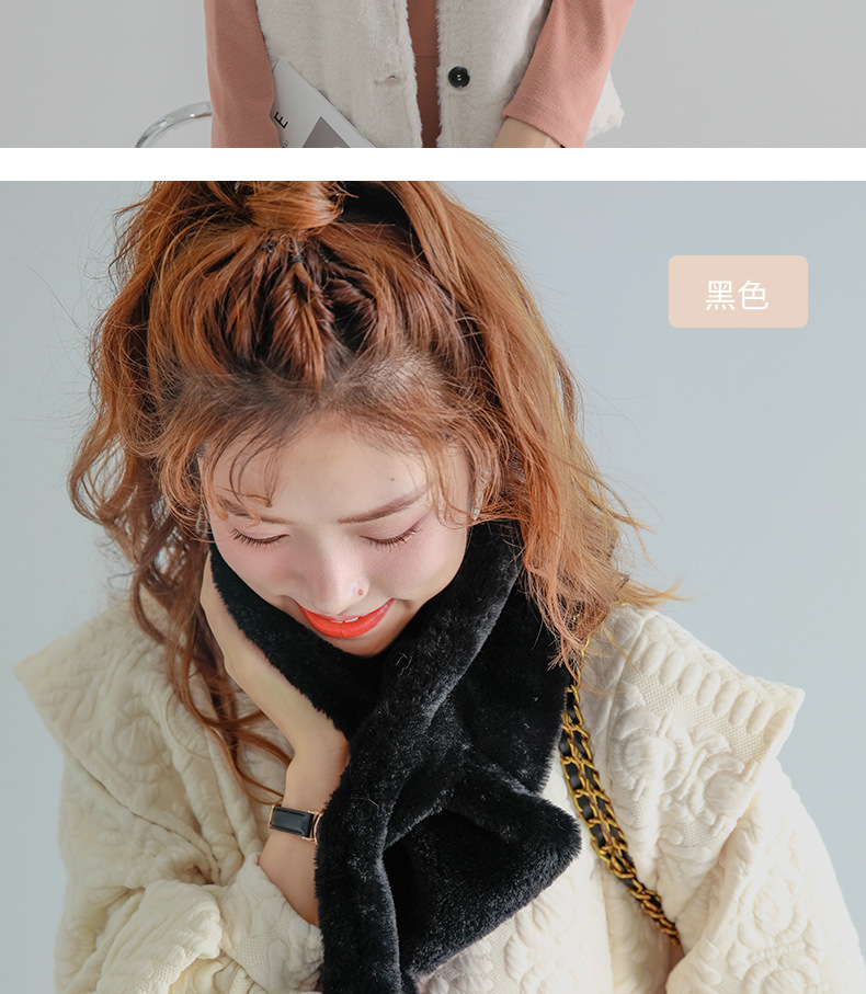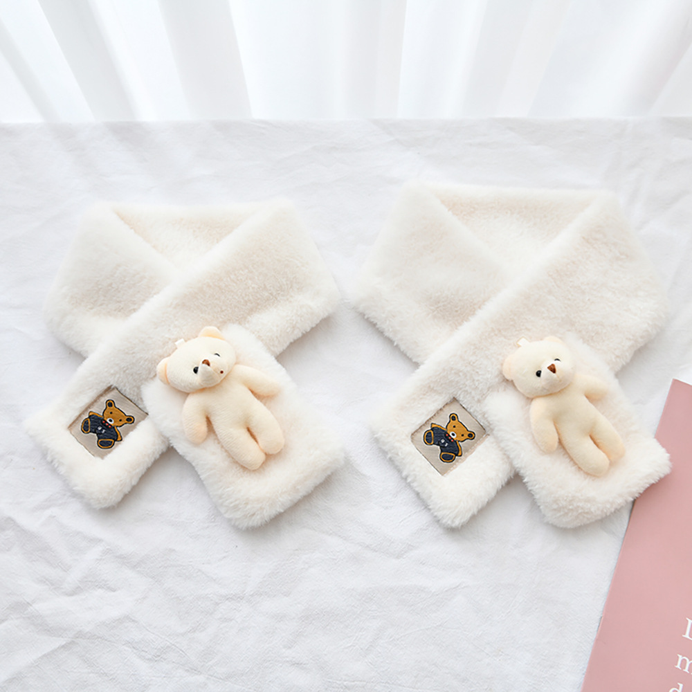 작은 곰 목도리 겨울용 귀여운 단색 모조 토끼털 야외 라이딩 방풍 방한 보온 중간 길이 목 보호 스카프