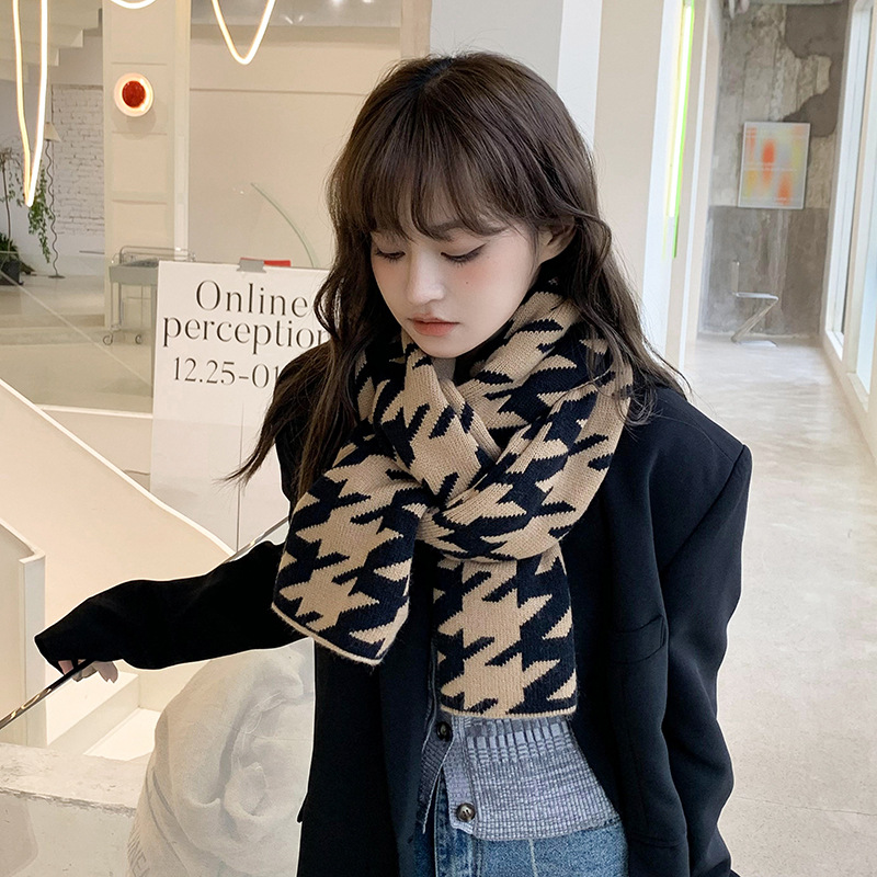 패션 영국 Houndstooth 만능 스카프 가을과 겨울 따뜻한 통기성 방한 고급 느낌 이중 목적 학생 스카프스토어 가기