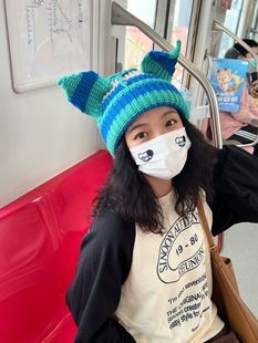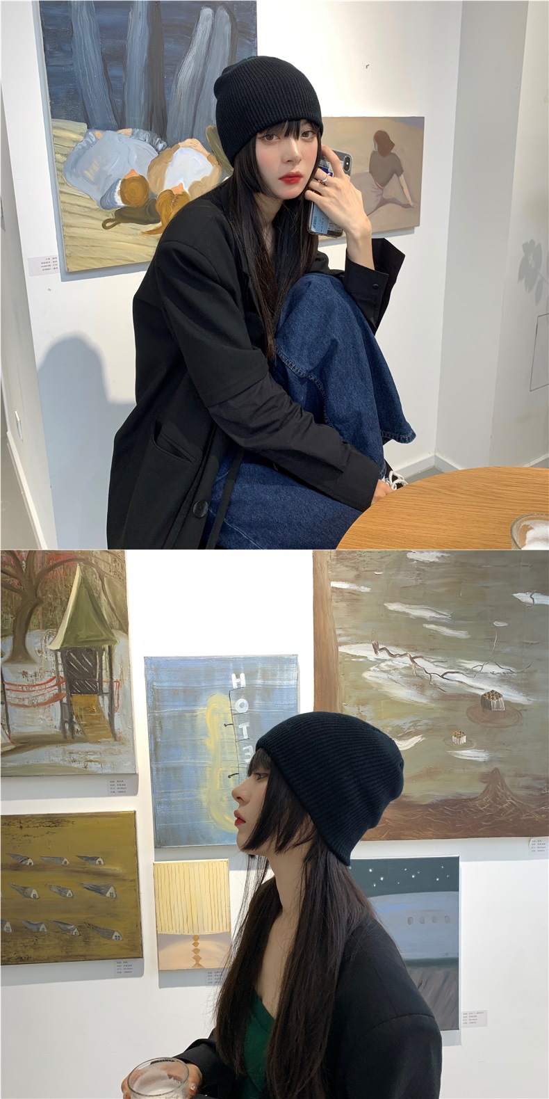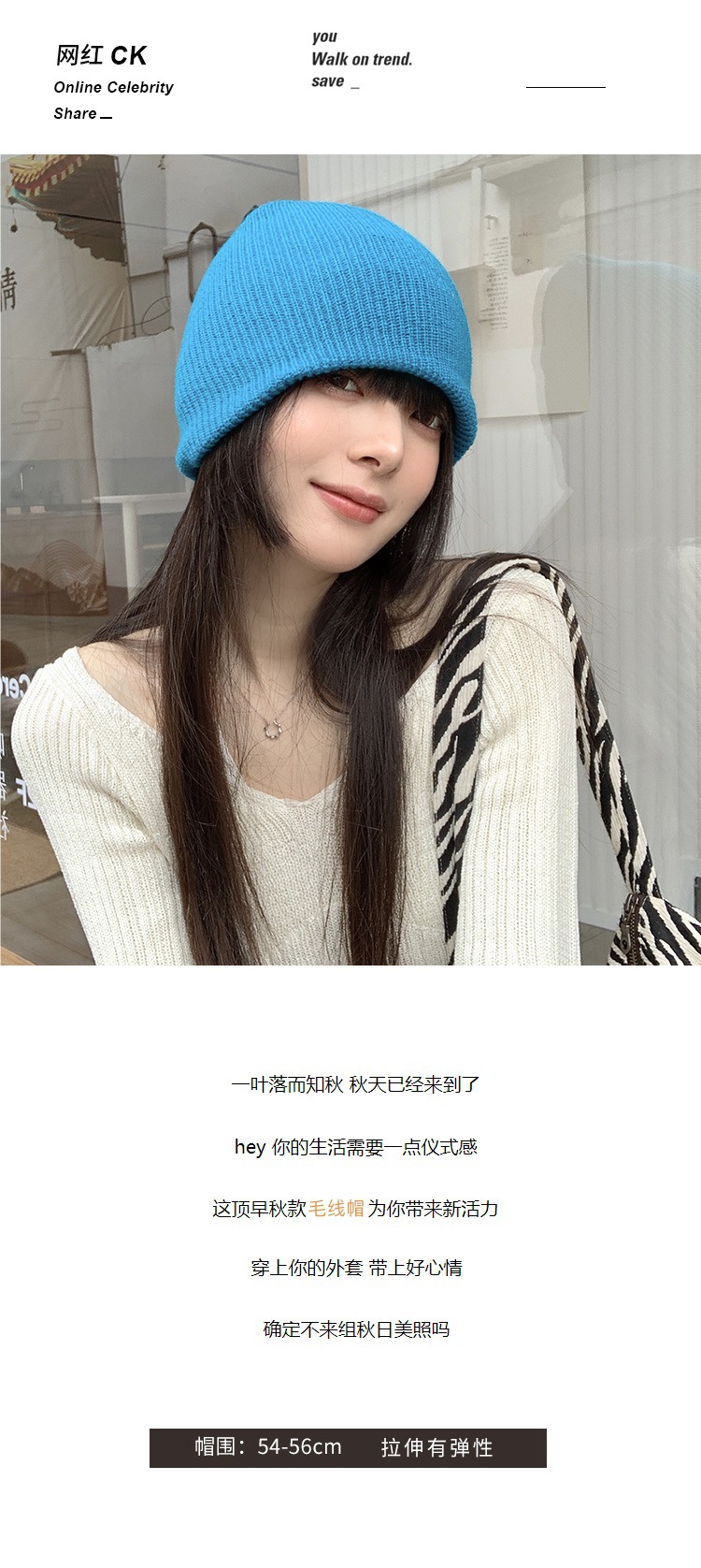 모자 여자의 가을과 겨울 한국 스타일 일본식 모든 일치 울 모자 유행 한국 귀 보호 따뜻한 인터넷 축하 블루 니트 모자 콜드 모자스토어 가기