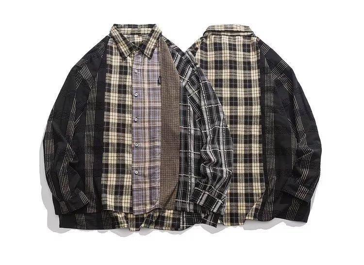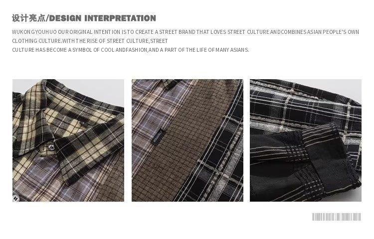 내셔널 패션 아메리칸 스타일 스트리트 스티칭 격자 무늬 셔츠 남자의 긴 소매 봄과 가을 패션 브랜드 일본 스타일 복고풍 커플 셔츠 재킷