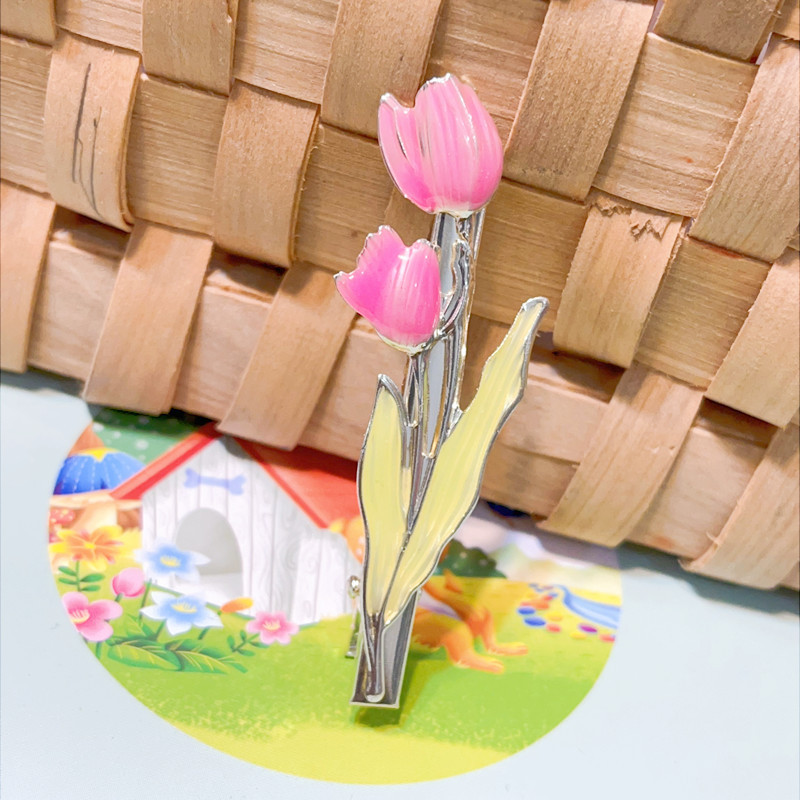 우아한 튤립 소녀 클립 새로운 앞머리 스몰 사이즈 머리핀 사이드 Duckbill 클립 여름 2022 모자스토어 가기