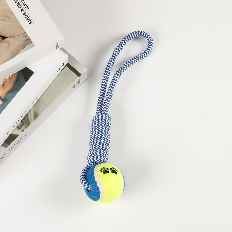 개 용품 제조업체 애완 동물 장난감 테니스 훈련 개 지루함 완화 물기 방지 어금니 벨트 테니스 코튼 로프 개 장난감스토어 가기