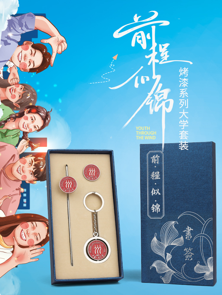 하얼빈 공과대학교 기념품 열쇠 고리 세트 중국 스타일 학생 졸업 금속 학교 엠블럼 책갈피 사용자 정의스토어 가기