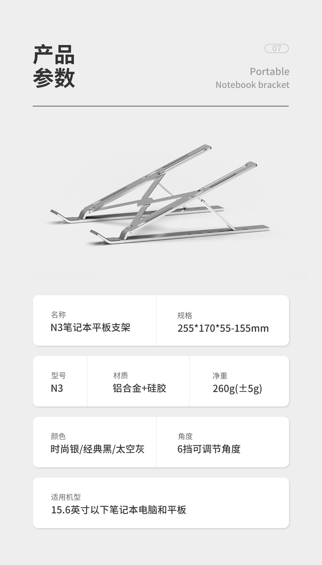 N3铝合金款---展开尺寸:25.5*18*15cm收纳尺寸:25.5*4.5*1.4cm