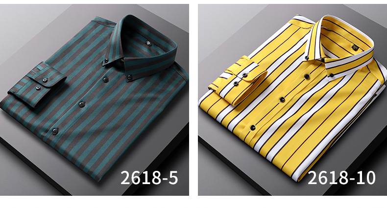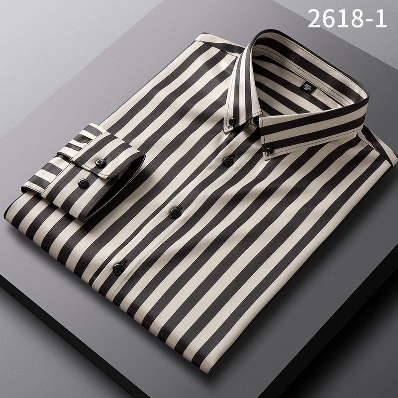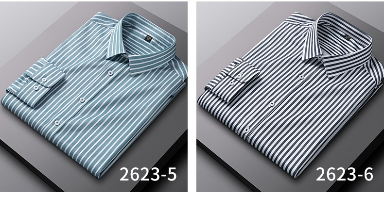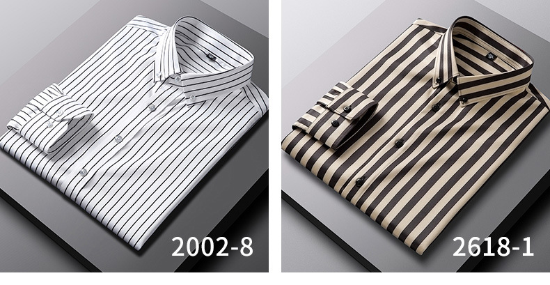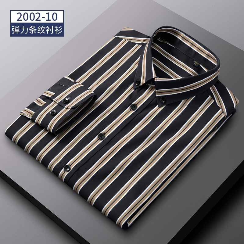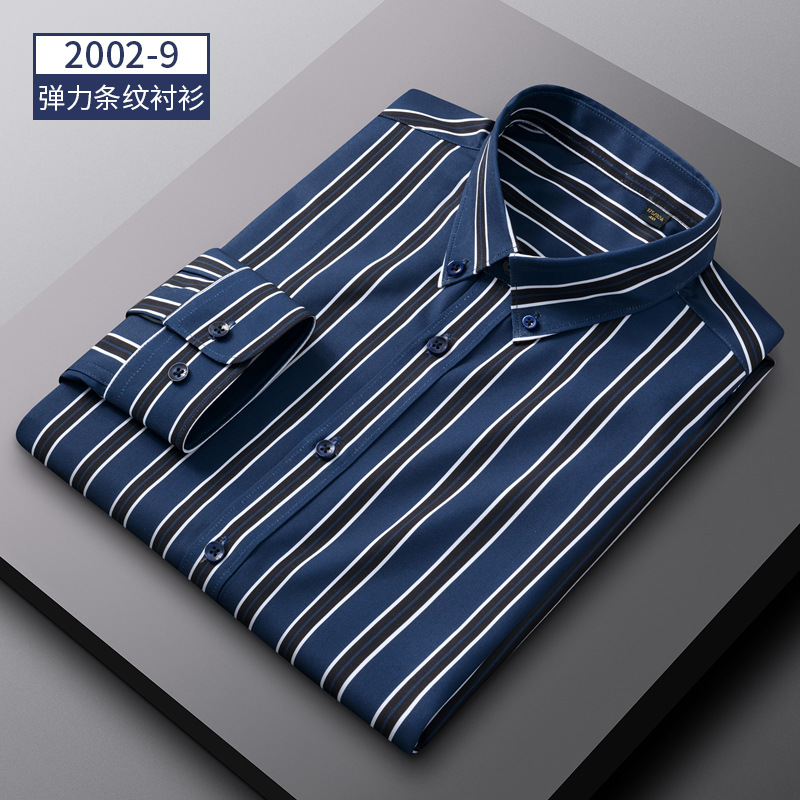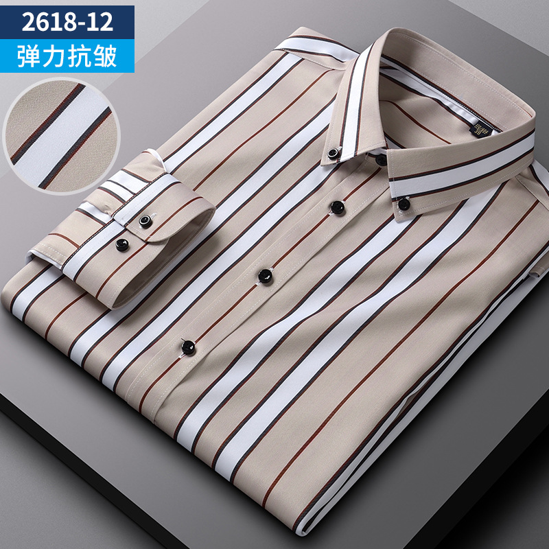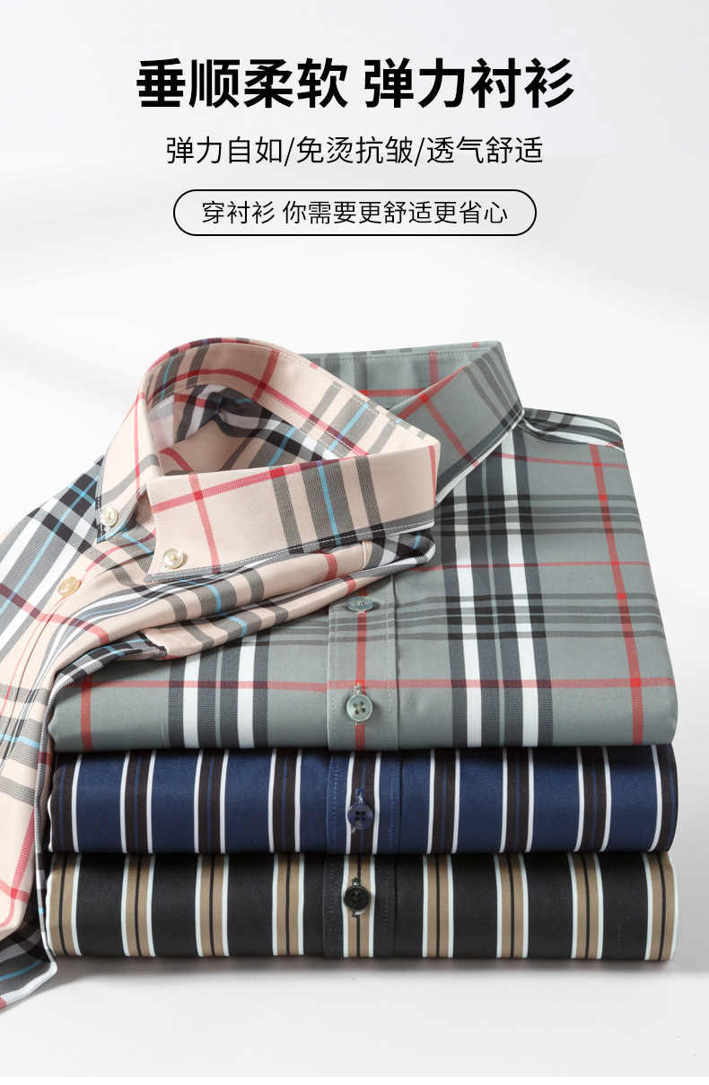 봄 가을 남성용 긴팔 신축성 있는 세로 줄무늬 셔츠 남성 캐주얼 비즈니스 체크무늬 다림질 필요 없는 구김 방지 셔츠 트렌디