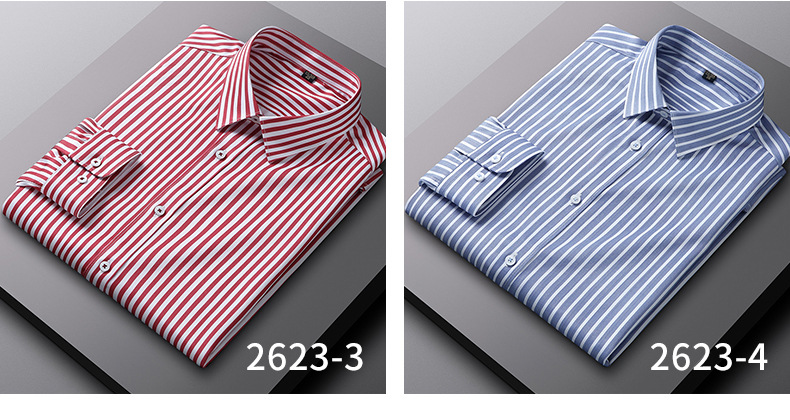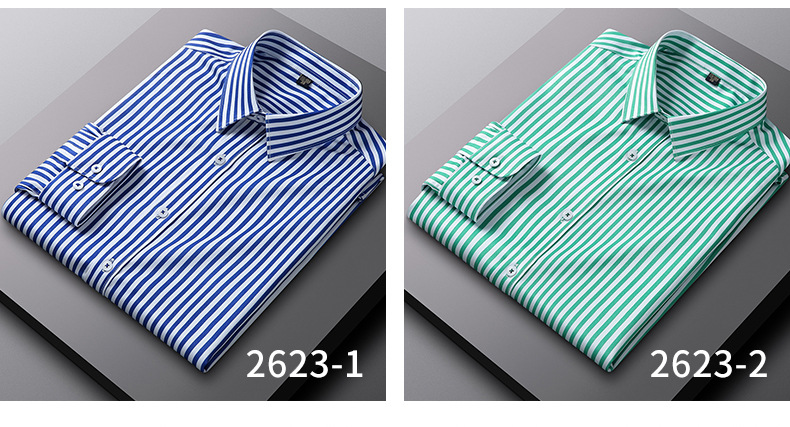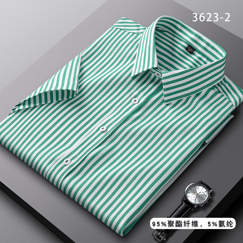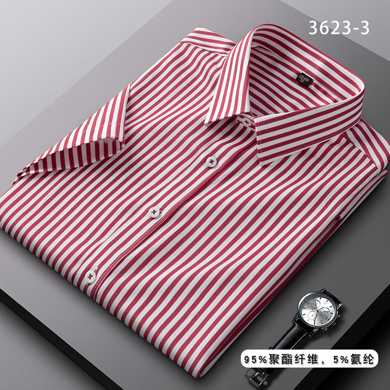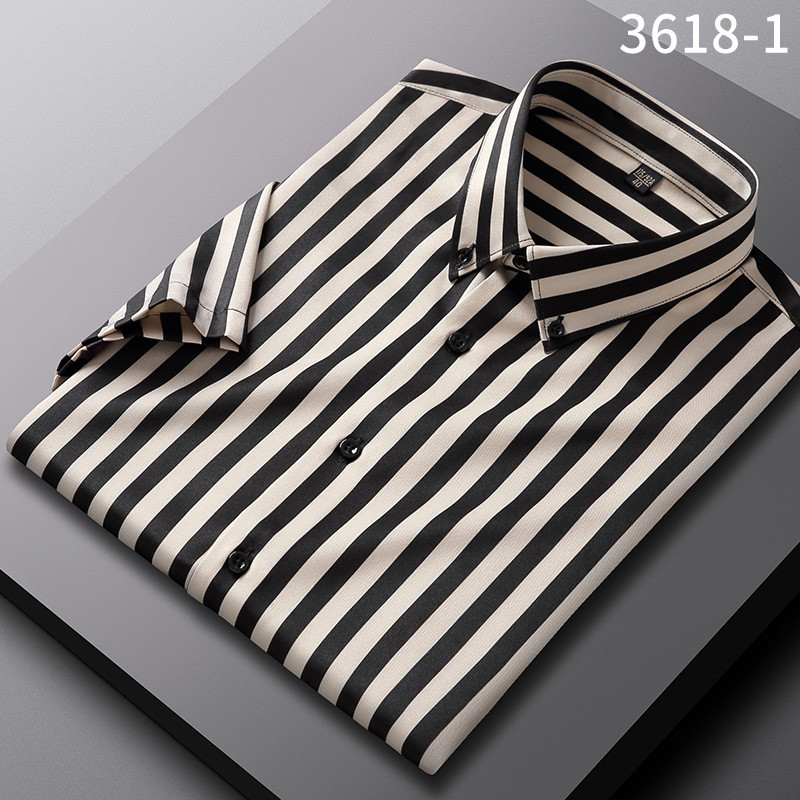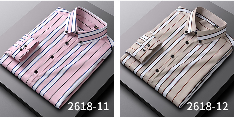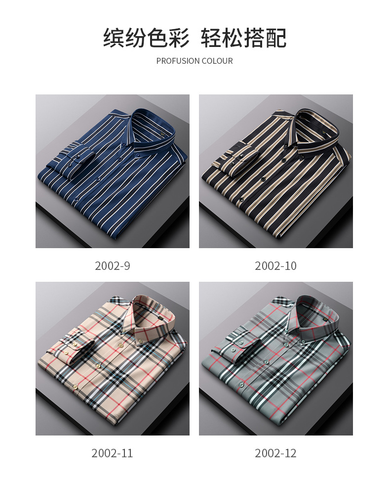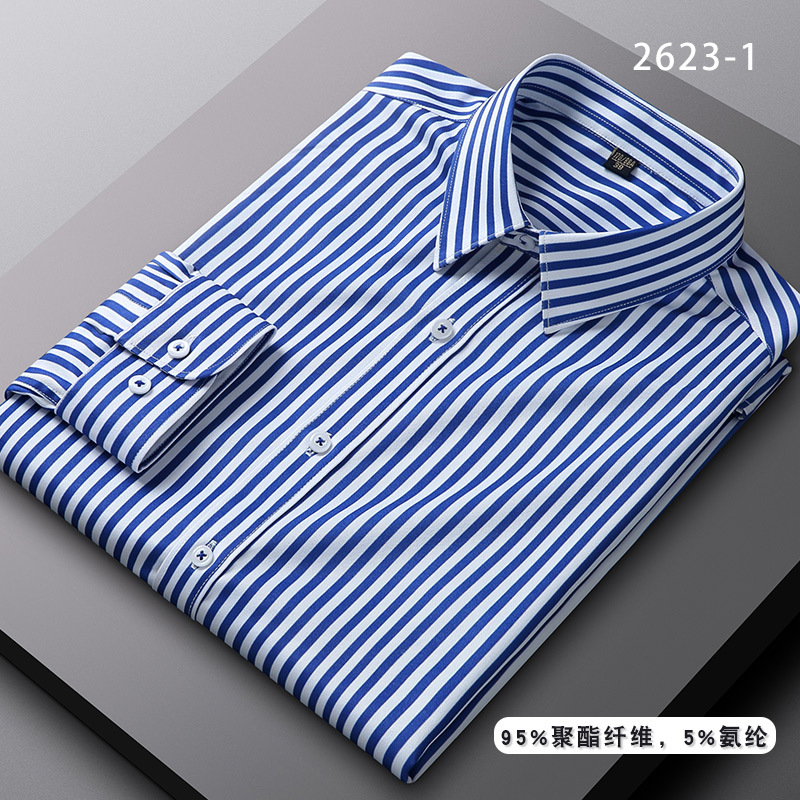 봄 가을 남성용 긴팔 신축성 있는 세로 줄무늬 셔츠 남성 캐주얼 비즈니스 체크무늬 다림질 필요 없는 구김 방지 셔츠 트렌디