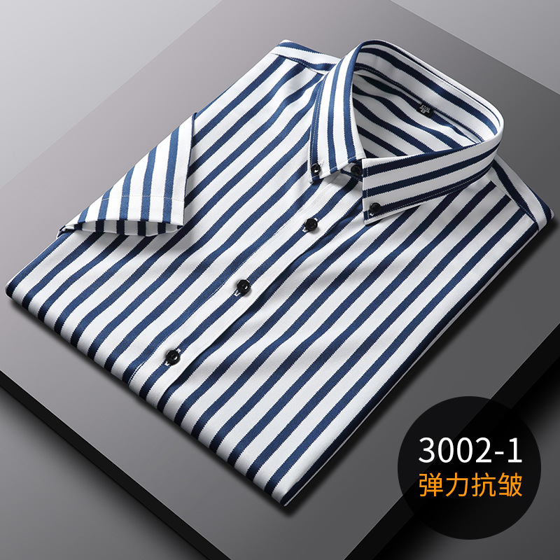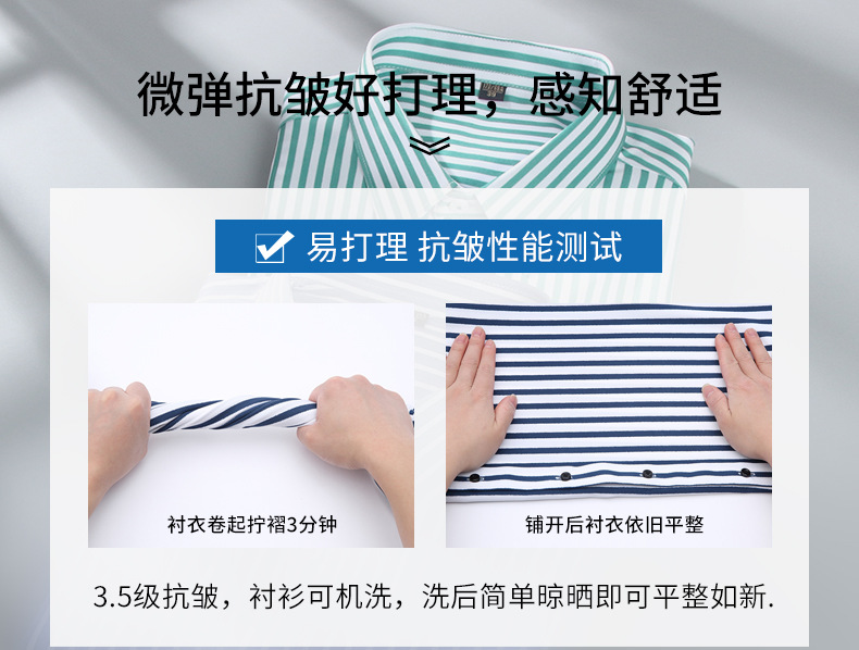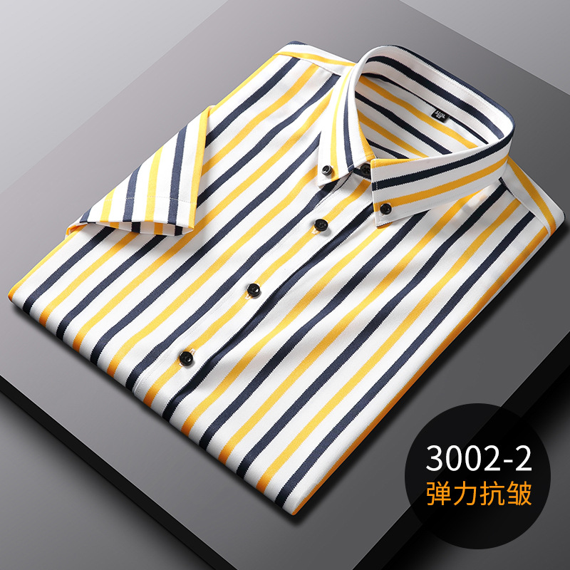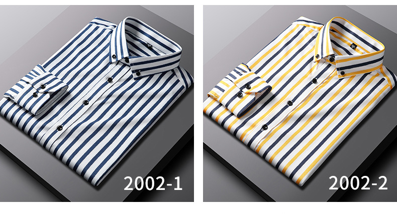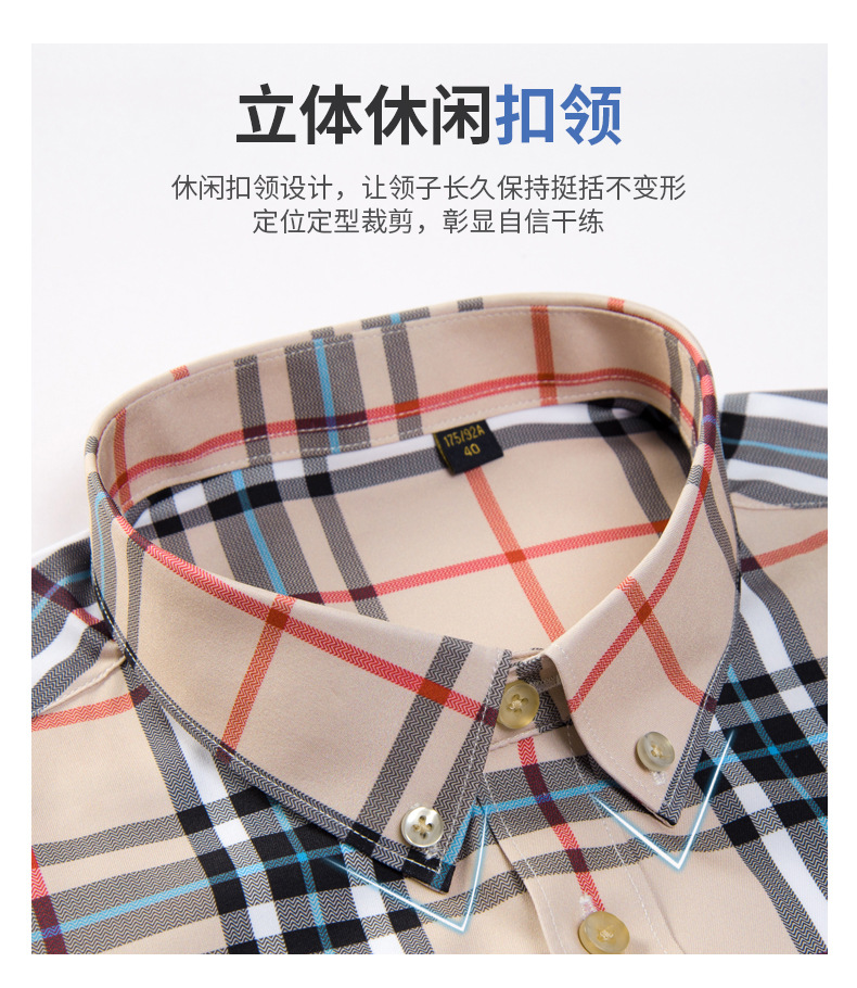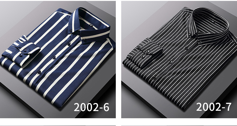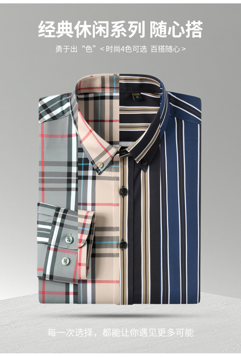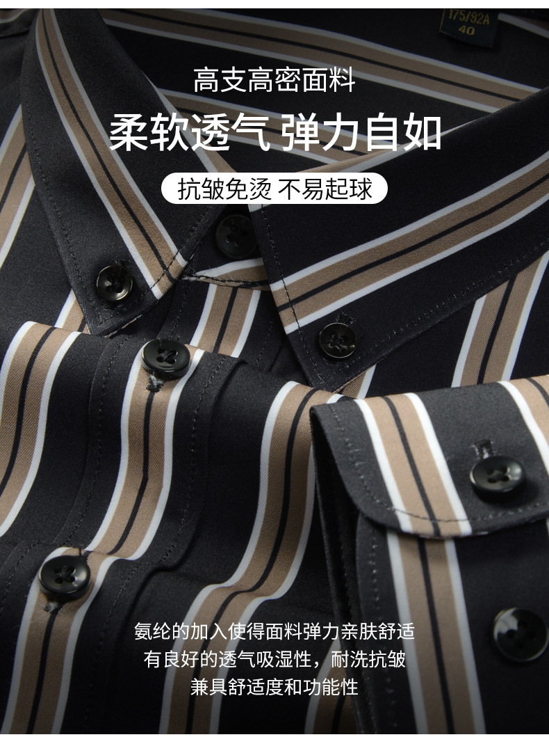봄 가을 남성용 긴팔 신축성 있는 세로 줄무늬 셔츠 남성 캐주얼 비즈니스 체크무늬 다림질 필요 없는 구김 방지 셔츠 트렌디스토어 가기