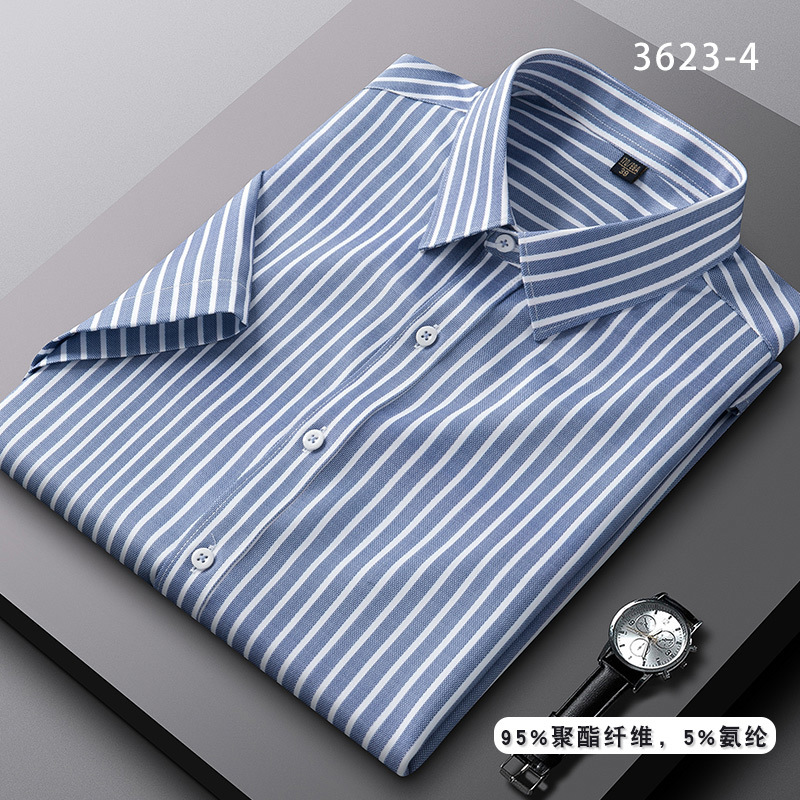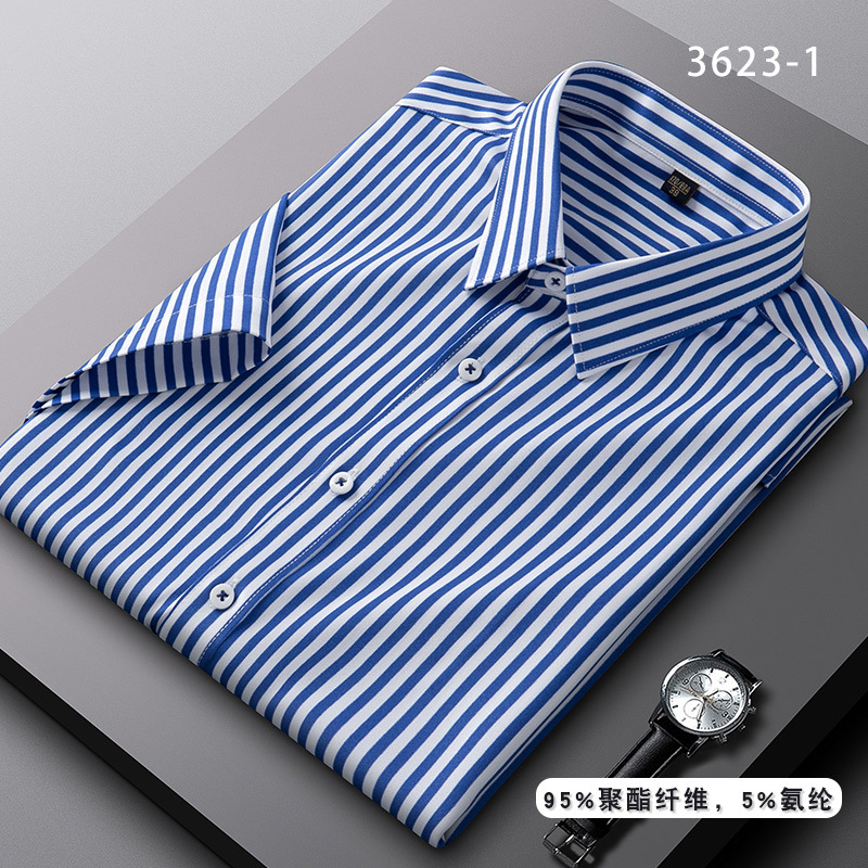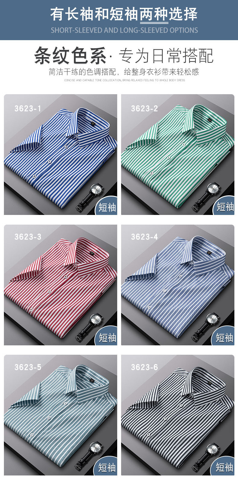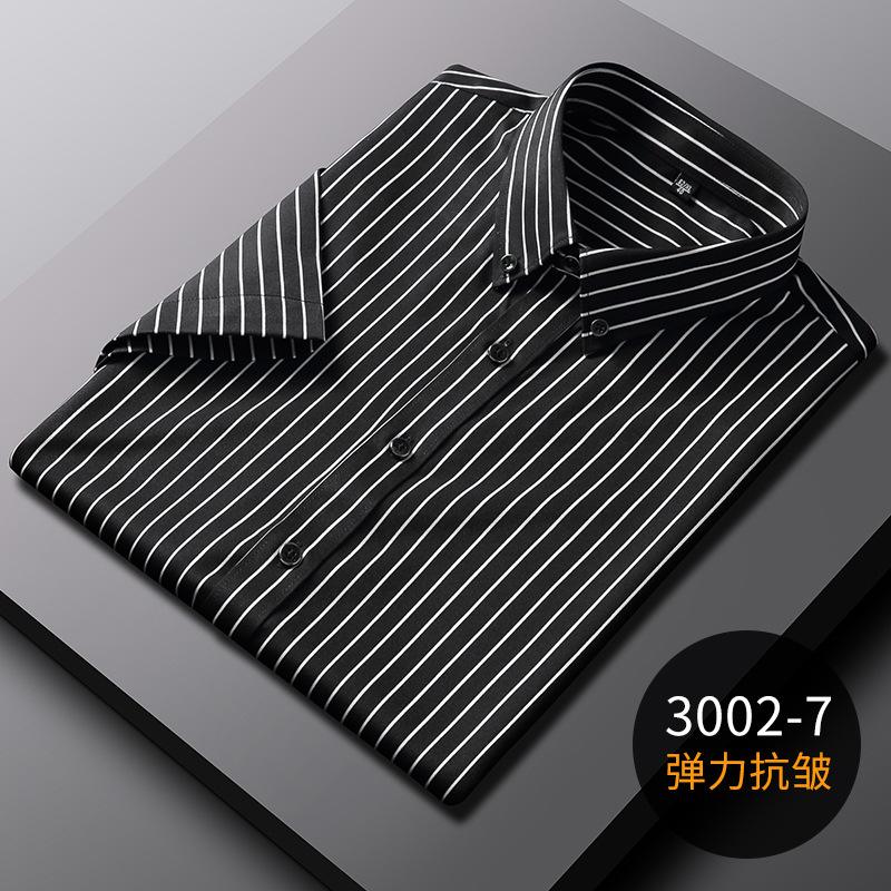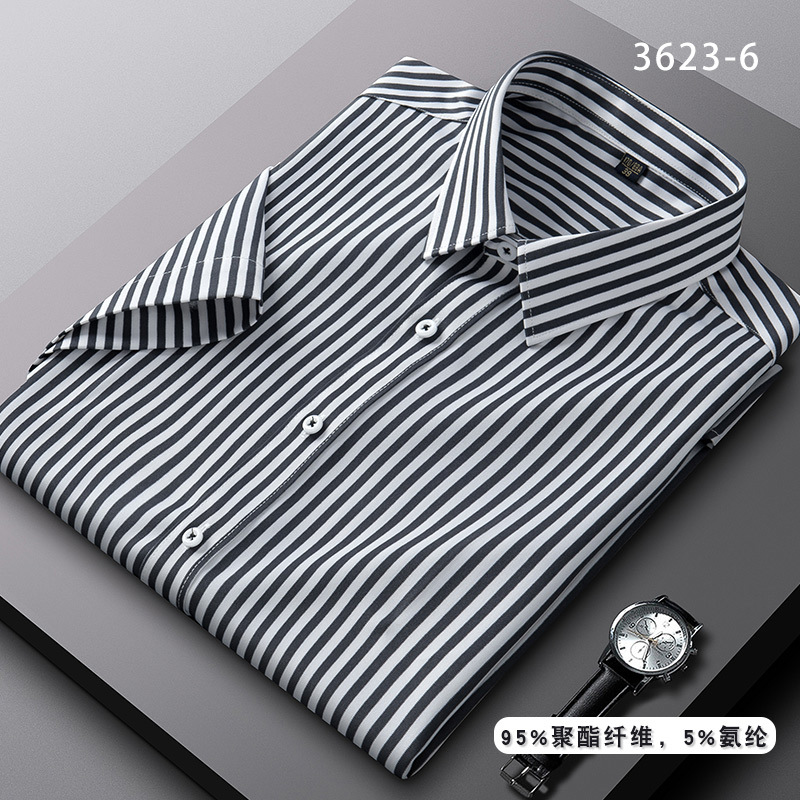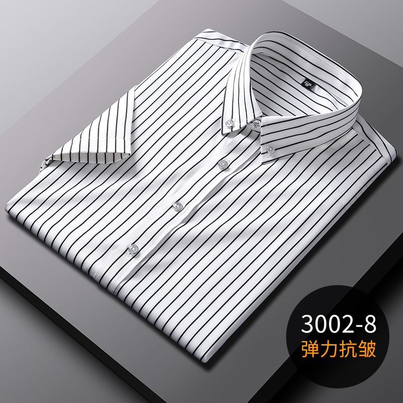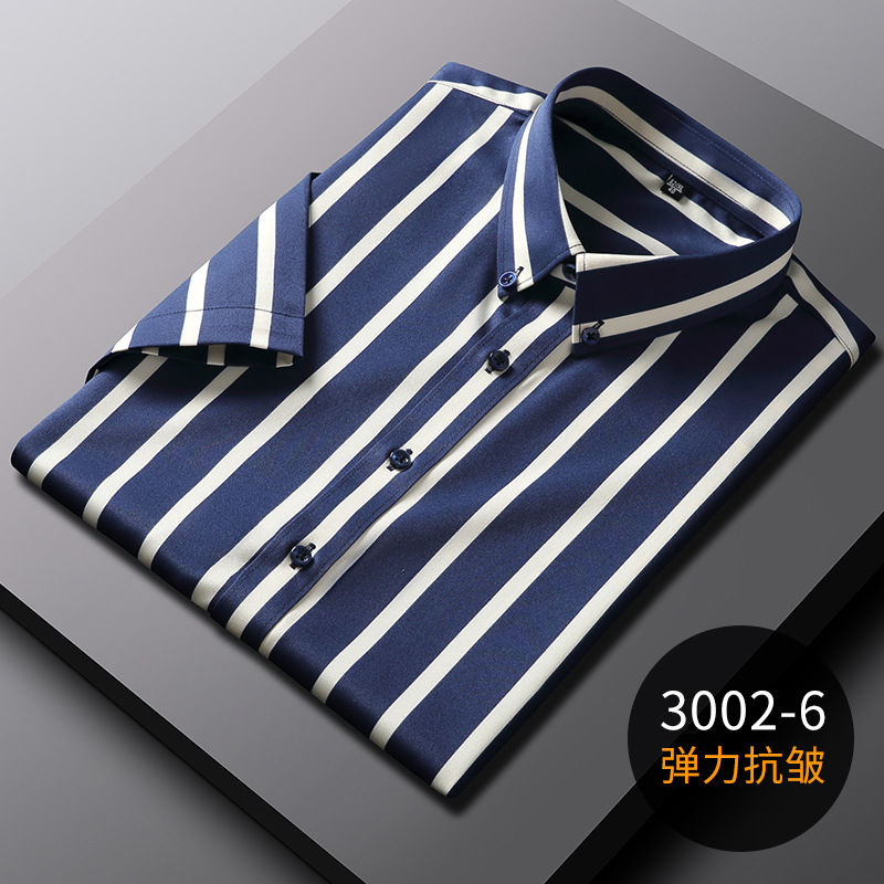 봄 가을 남성용 긴팔 신축성 있는 세로 줄무늬 셔츠 남성 캐주얼 비즈니스 체크무늬 다림질 필요 없는 구김 방지 셔츠 트렌디스토어 가기