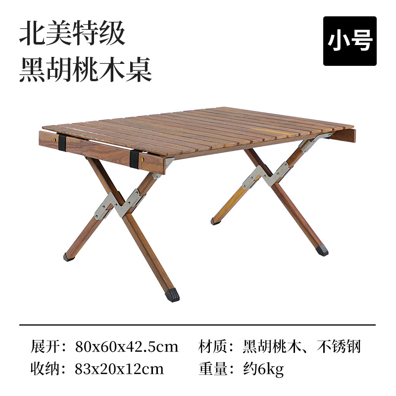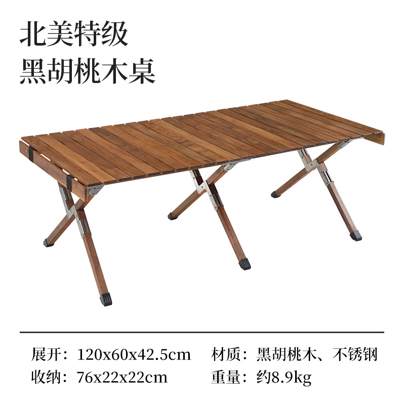 블랙 호두 나무 캠핑 계란 롤 테이블 접이식 나무 테이블 휴대용 캠핑 고급 캐주얼 피크닉 테이블