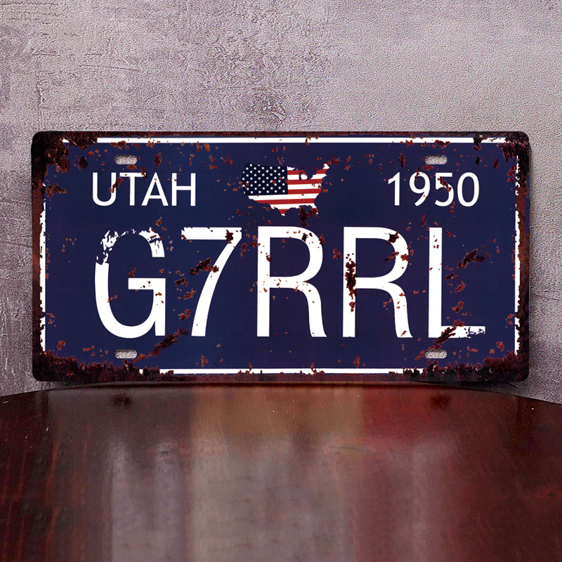 빈티지 번호판 주석 그림 산업 스타일 바 벽 장식 이발사 바베큐 레스토랑 창조적 인 벽 성격 펜던트