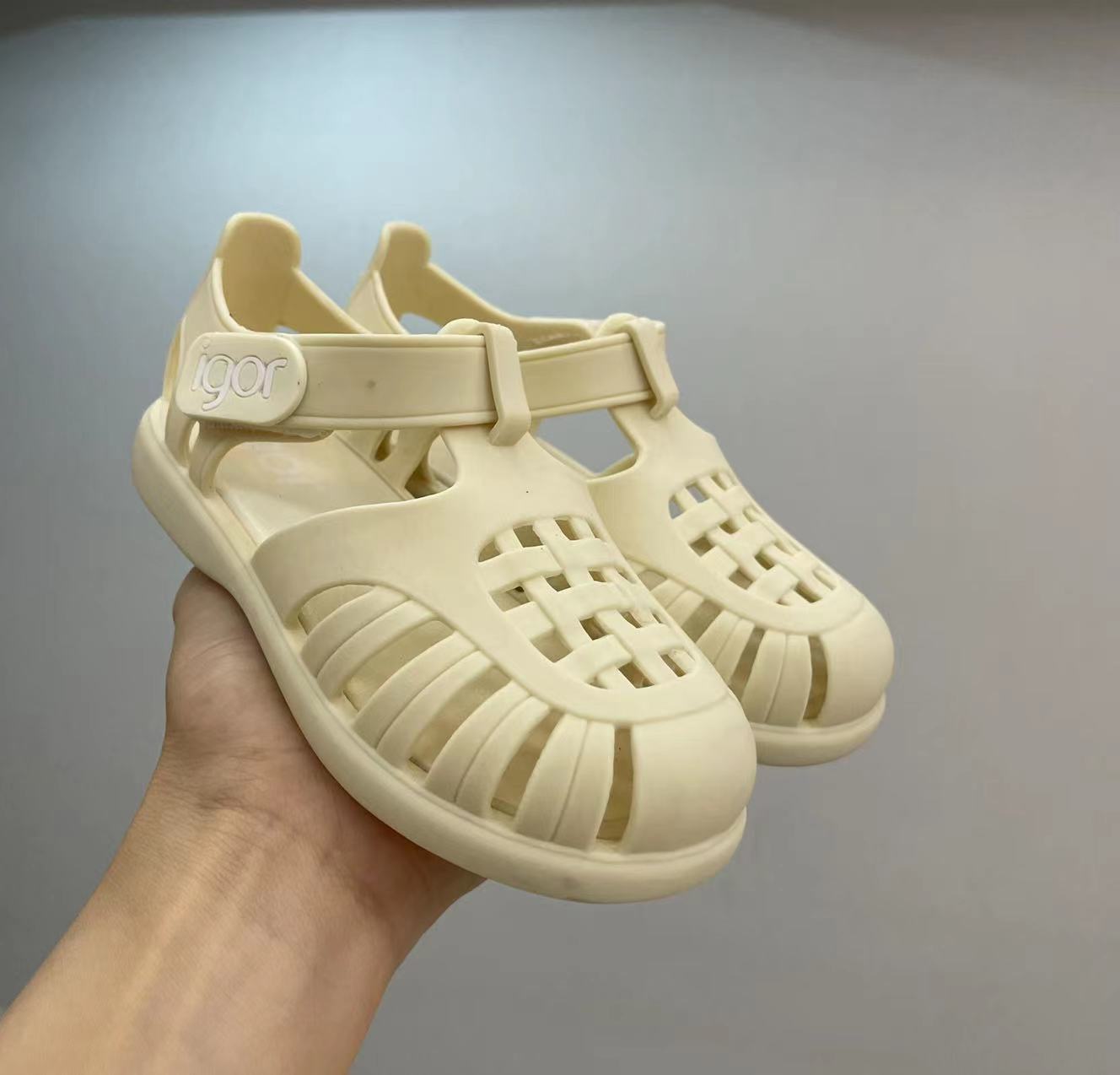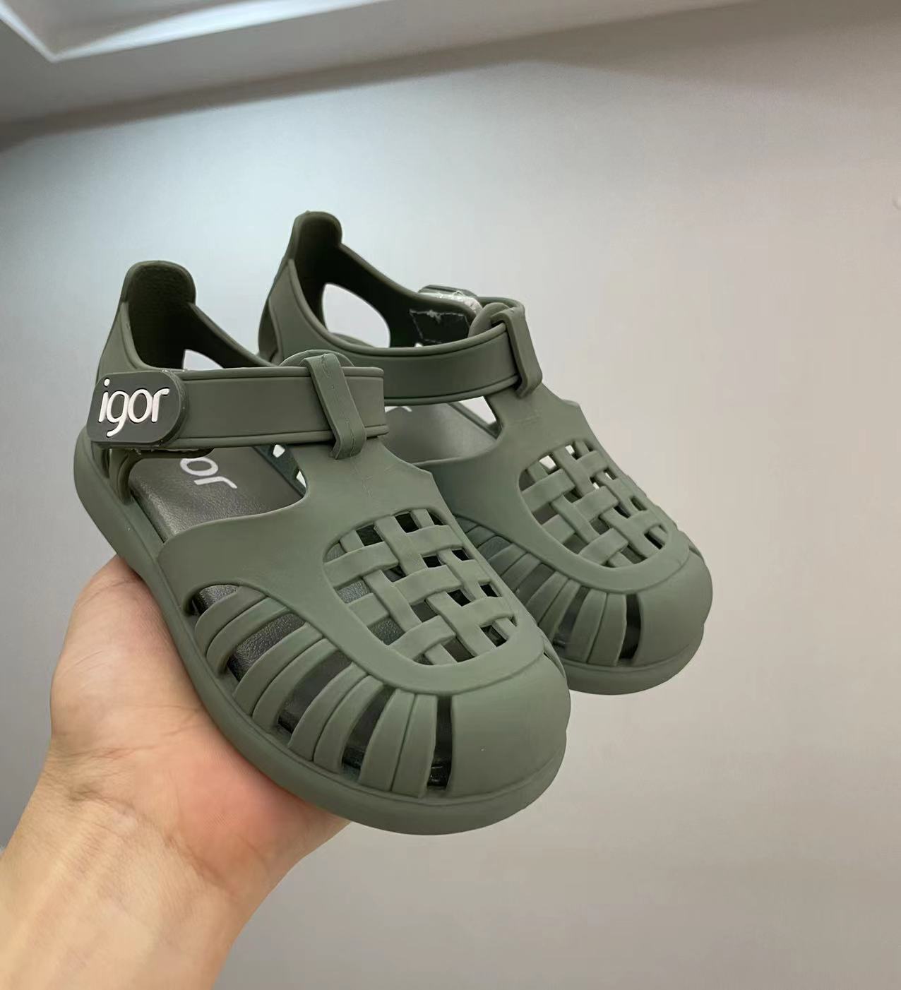 새로운 스페인어 igor 같은 스타일 어린이 발가락 캐주얼 샌들 소년 부드러운 바닥 복고풍 소녀 아기 젤리 신발스토어 가기