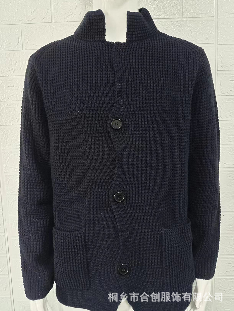 국경을 넘는 유럽과 미국 남성 스웨터 재킷 슬림 핏 세트 수직 칼라 니트 스웨터 2025 가을과 겨울 남성용 새 카디건스토어 가기