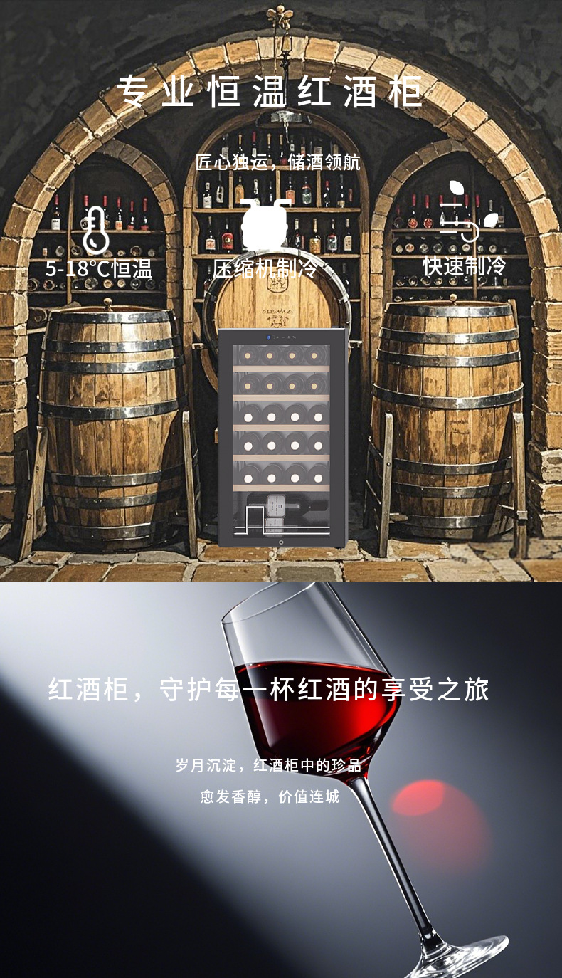 웨이잉 ys-4818 와인 캐비닛, 항온 공냉식 압축기 냉각, 단일 온도, 무결빙, 너도밤나무 선반