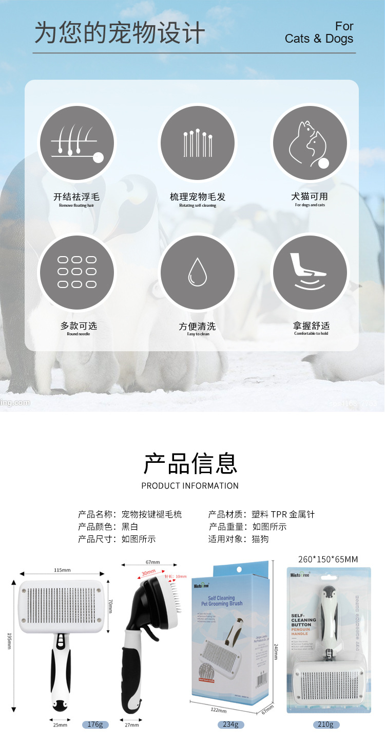 • 펭귄 (미세 바늘) 끈적 끈적한 구슬 자동 머리 빗