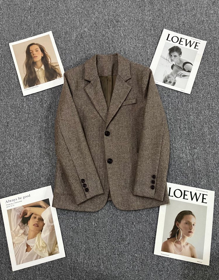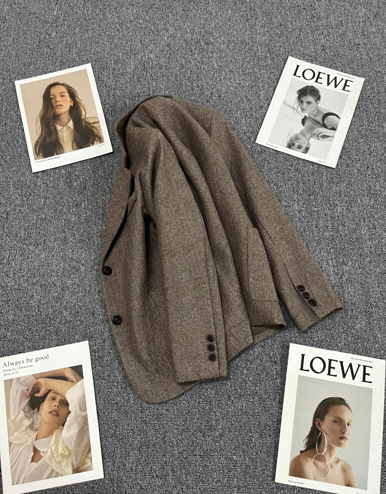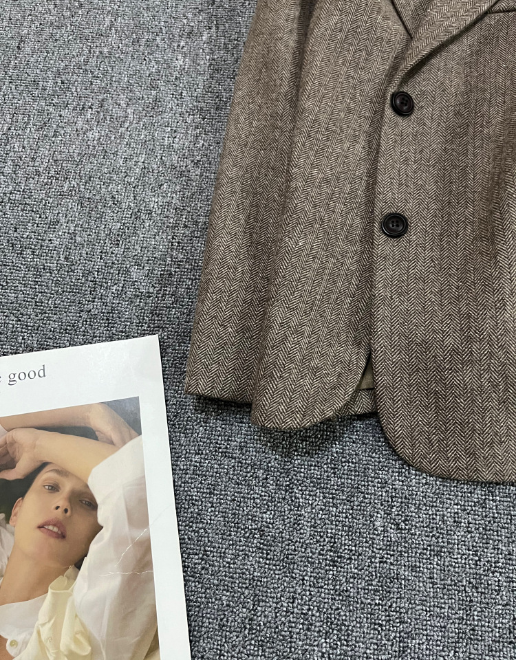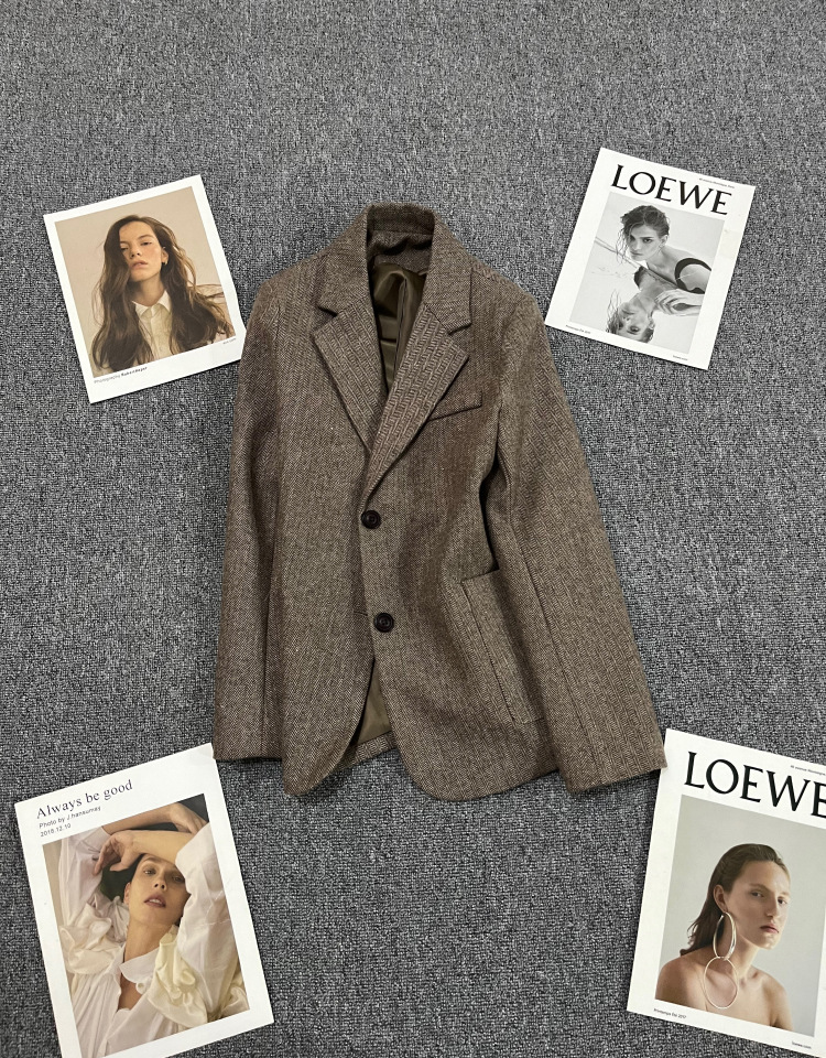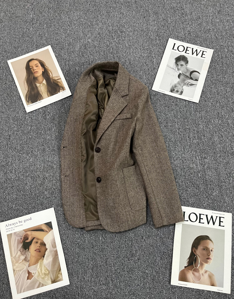 여성을위한 갈색 헤링본 모직 정장 재킷 2025 새로운 가을, 겨울 디자인 다목적 캐주얼 스트리트 슈트스토어 가기
