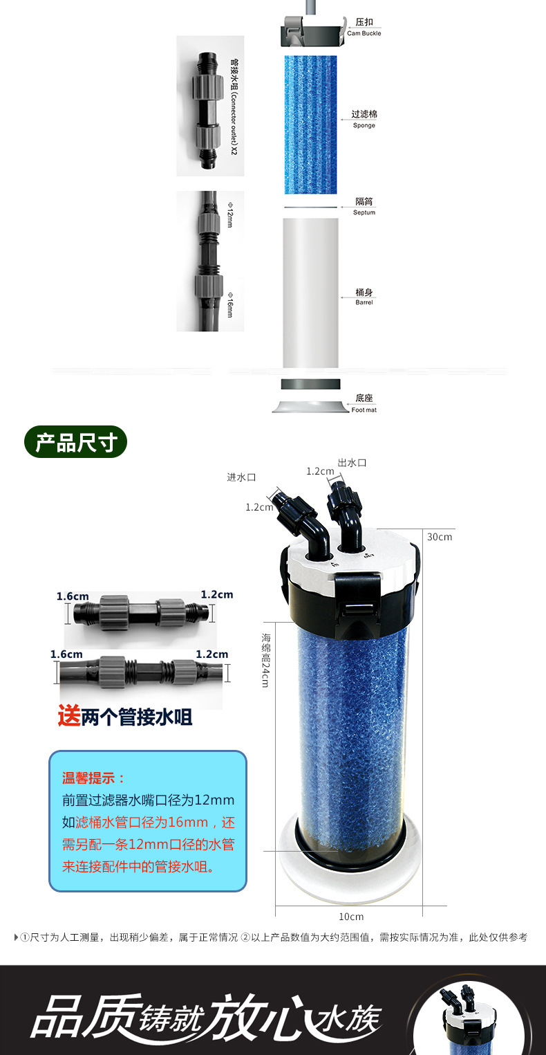 Chuangxing 사전 필터 배럴 QZ30 전원 어항 외부 필터 실린더 외부 필터 카트리지 DIY 수족관 사전 필터 배럴
