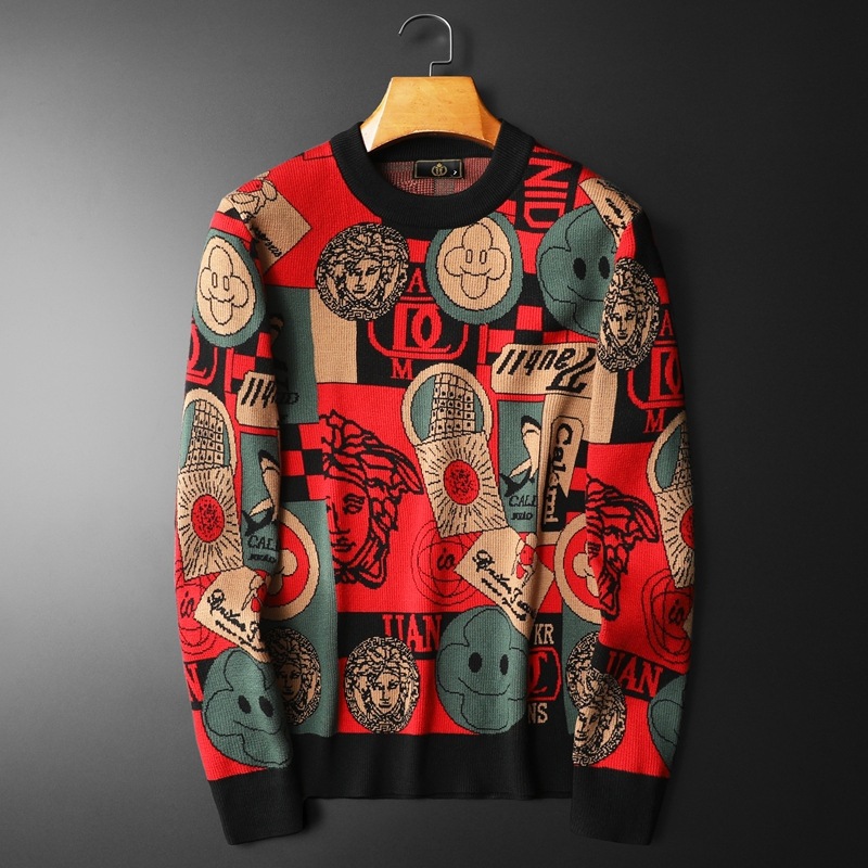 가을과 겨울 2023 새로운 유럽 패션 남성 패션 독특한 둥근 목 인쇄 풀오버 스웨터스토어 가기