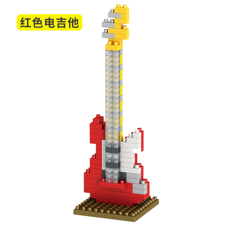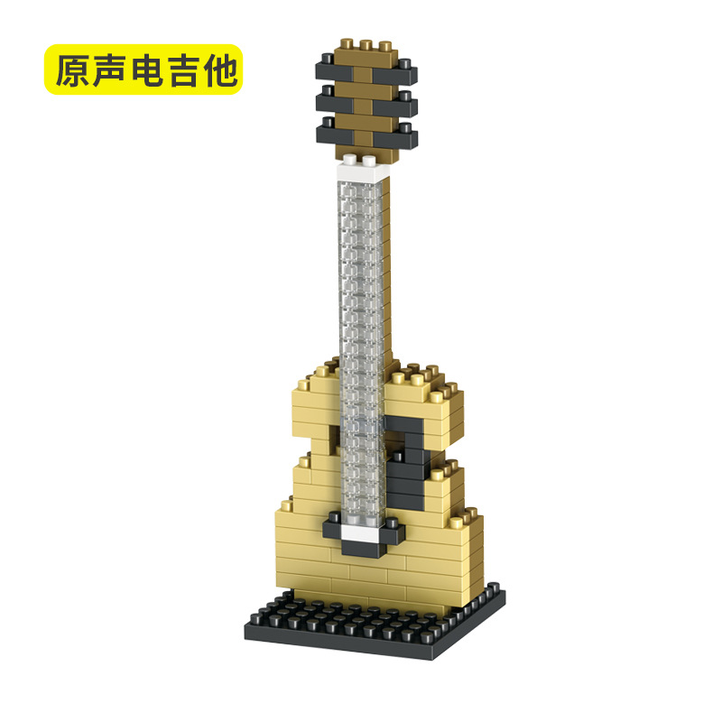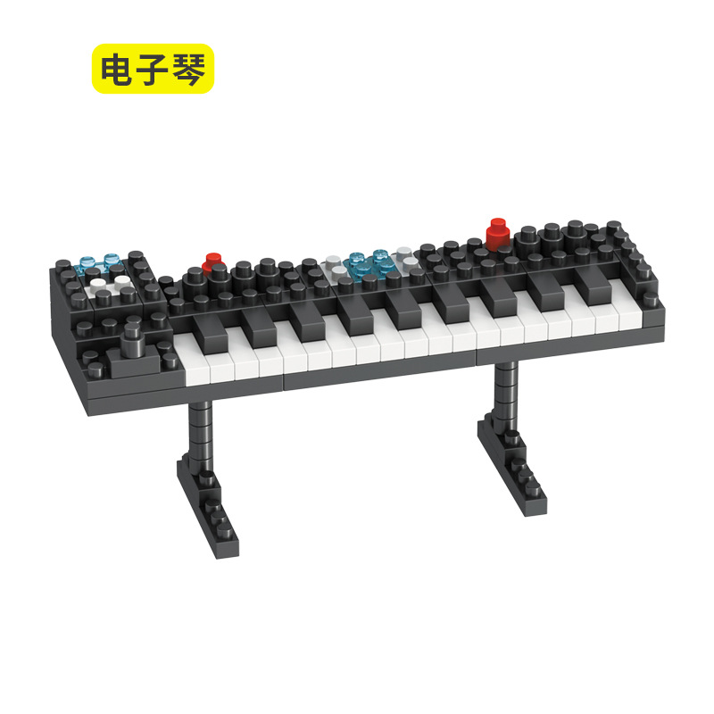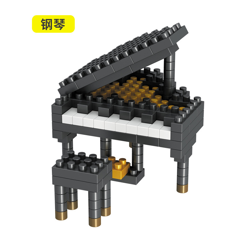Jike 빌딩 블록 가방 시리즈 음악 악기 피아노 기타 작은 테이블 세트 미립자 어린이 수출 장난감 도매