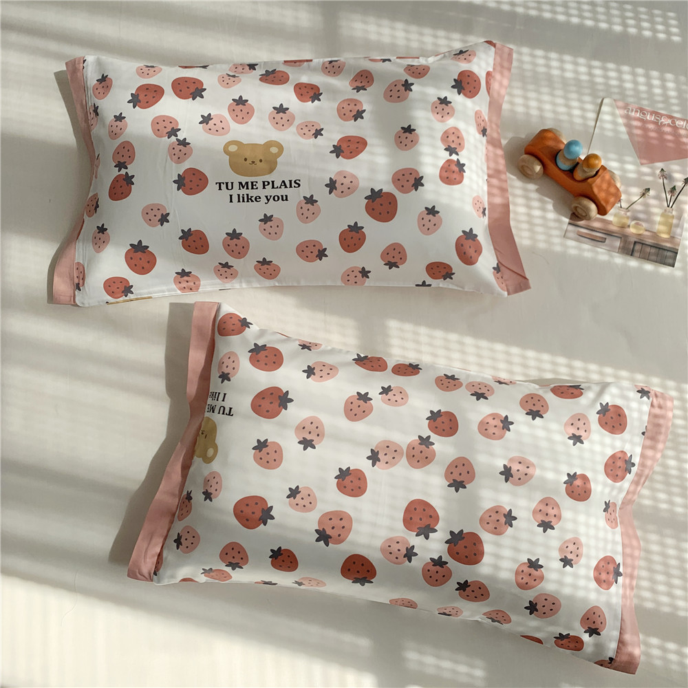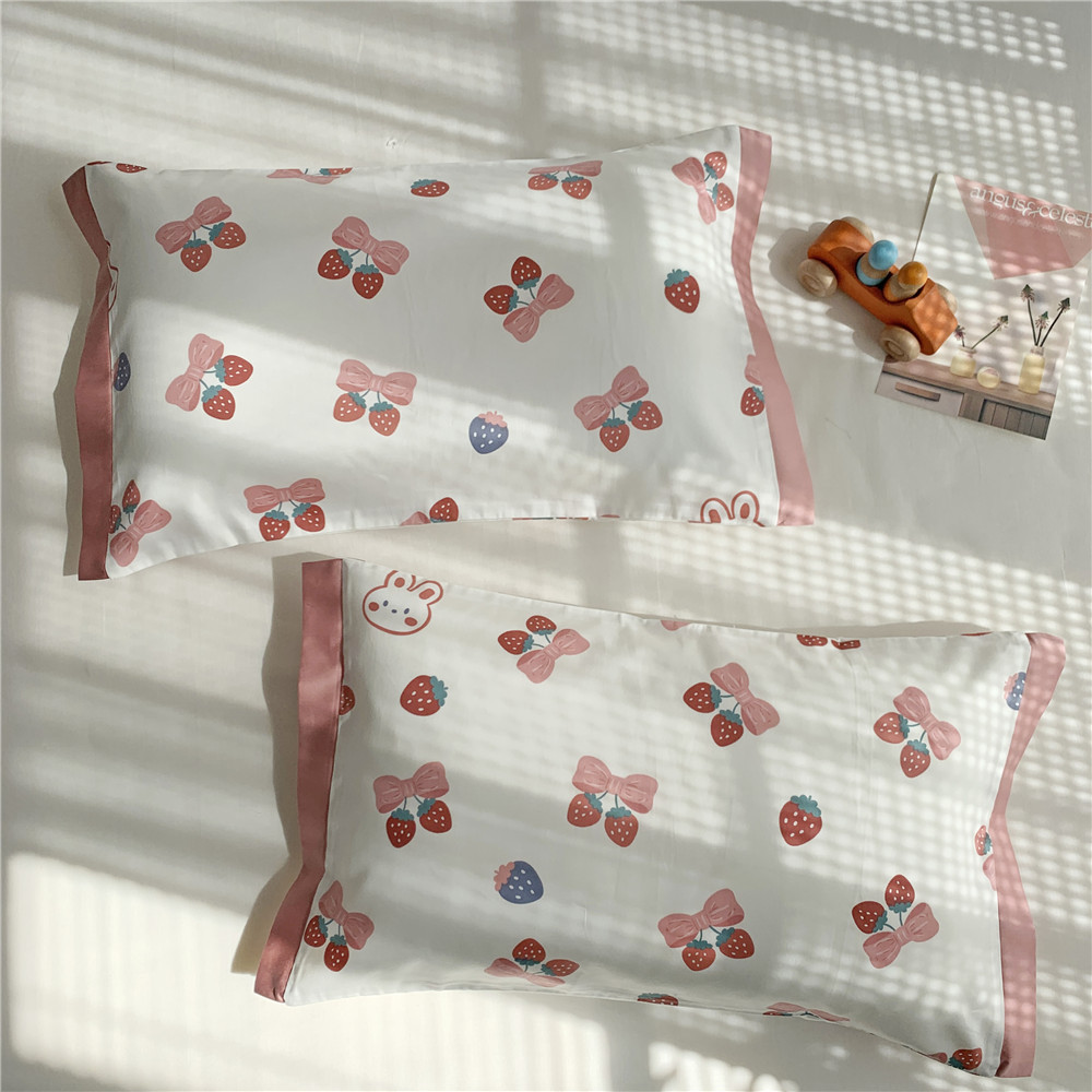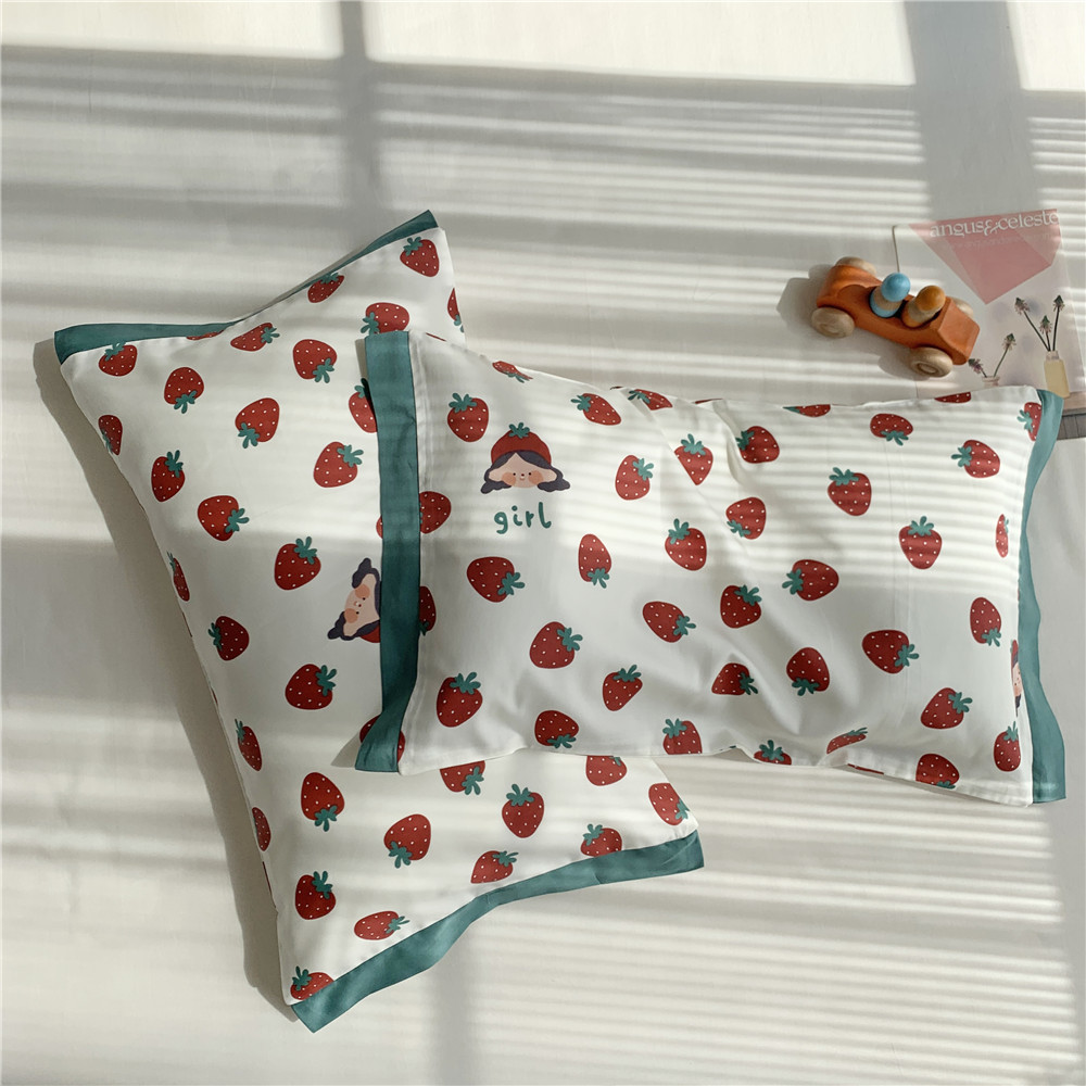 • 긴 스테이플 코튼 베갯잇-딸기 소녀