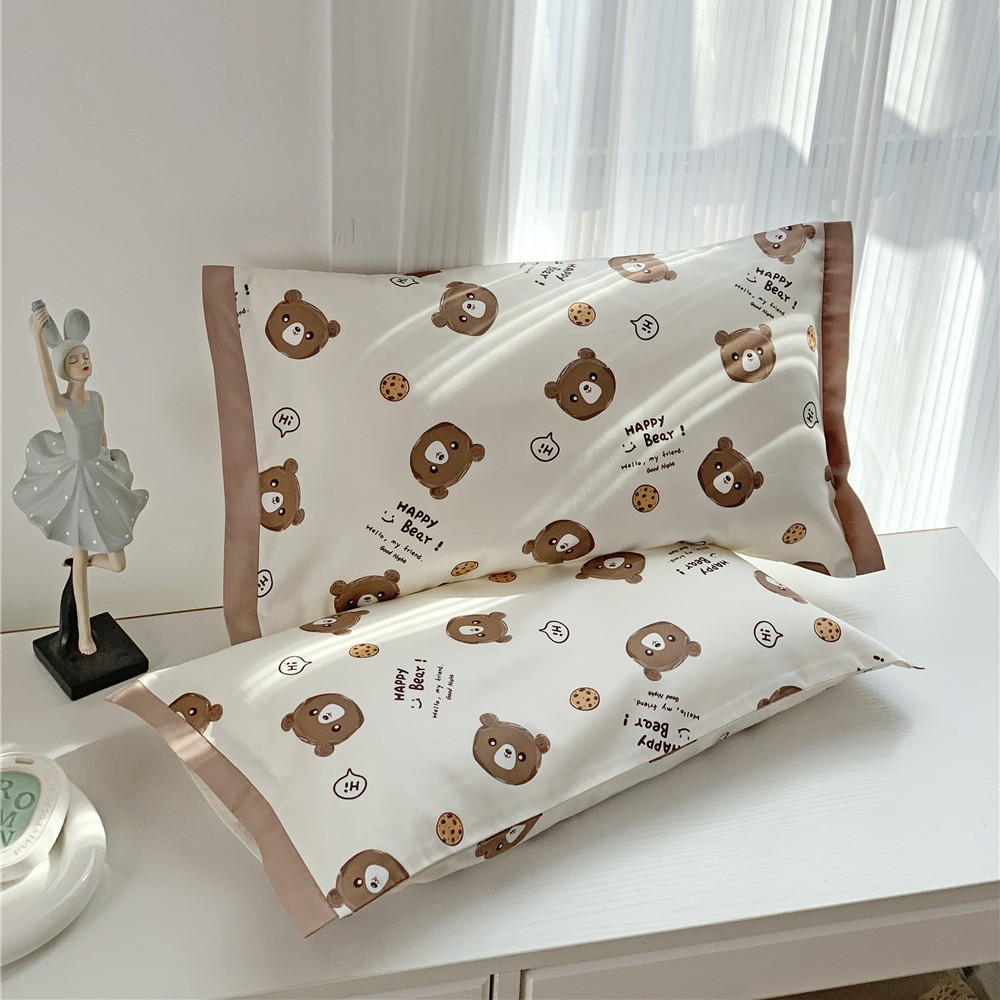• 긴 스테이플 코튼 베갯잇-비스킷 곰