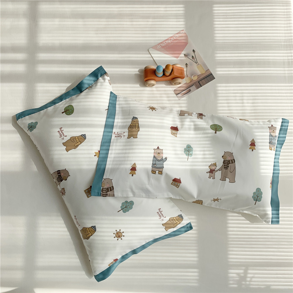 • 긴 스테이플 코튼 베갯잇-곰 가족