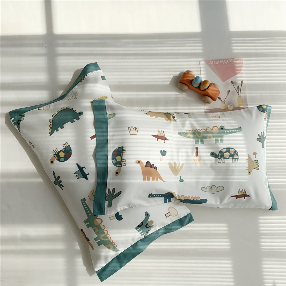 • 긴 스테이플 코튼 베갯잇-공룡 파티