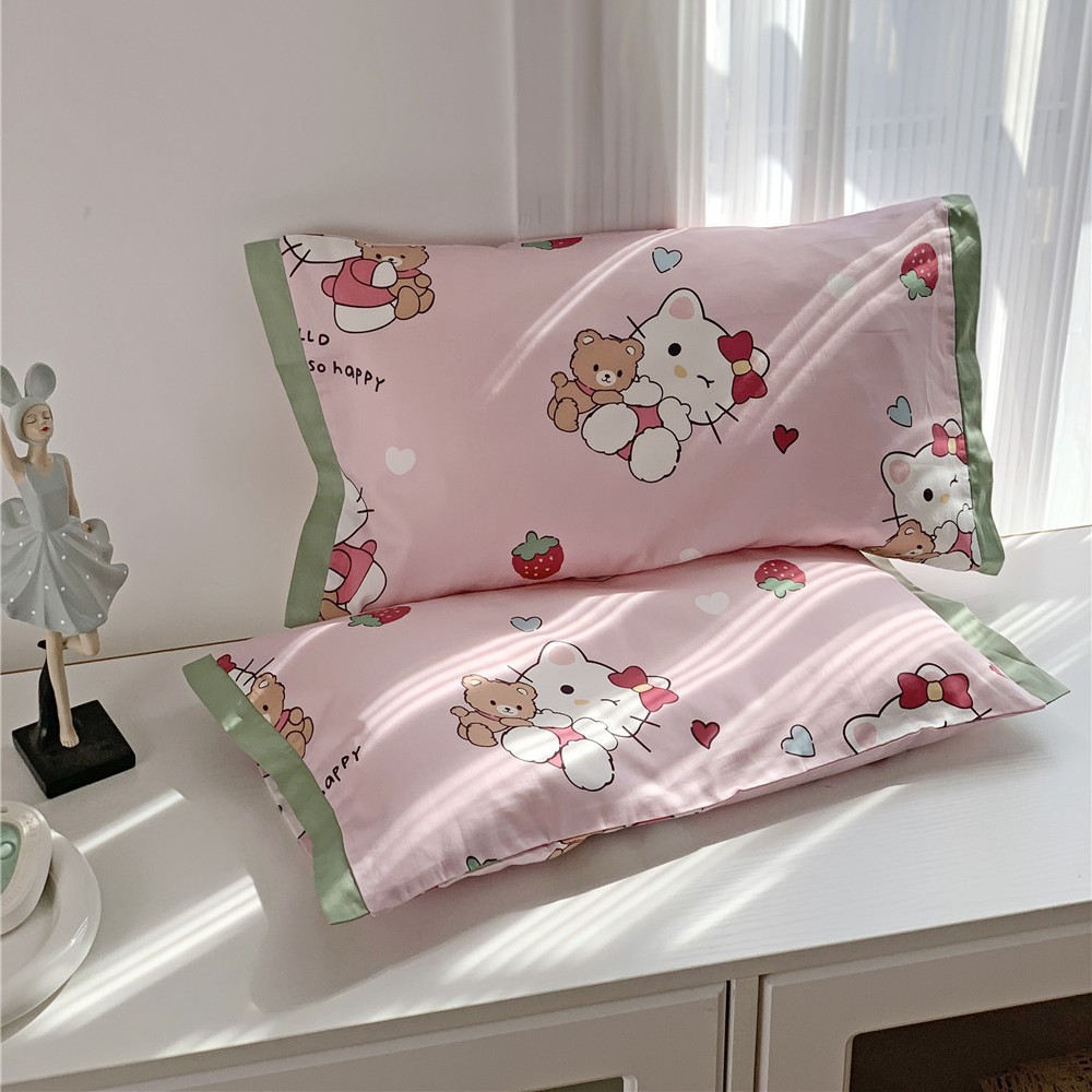 • 긴 스테이플 코튼 베갯잇-딸기 곰