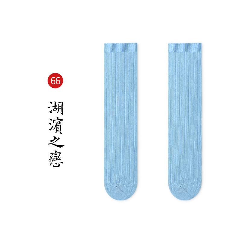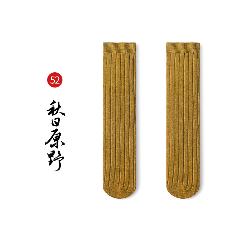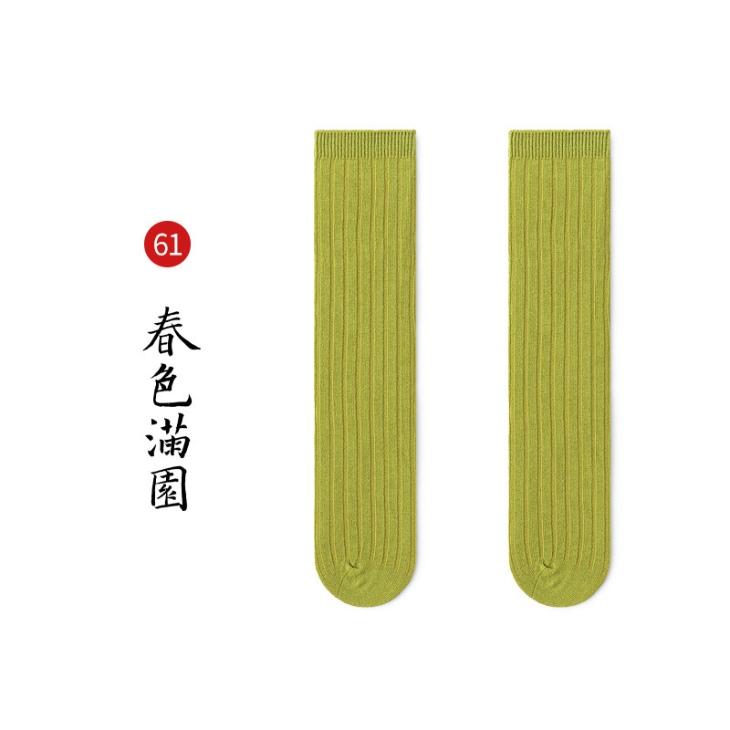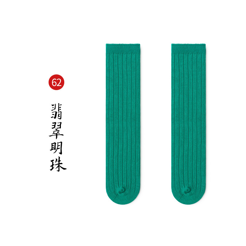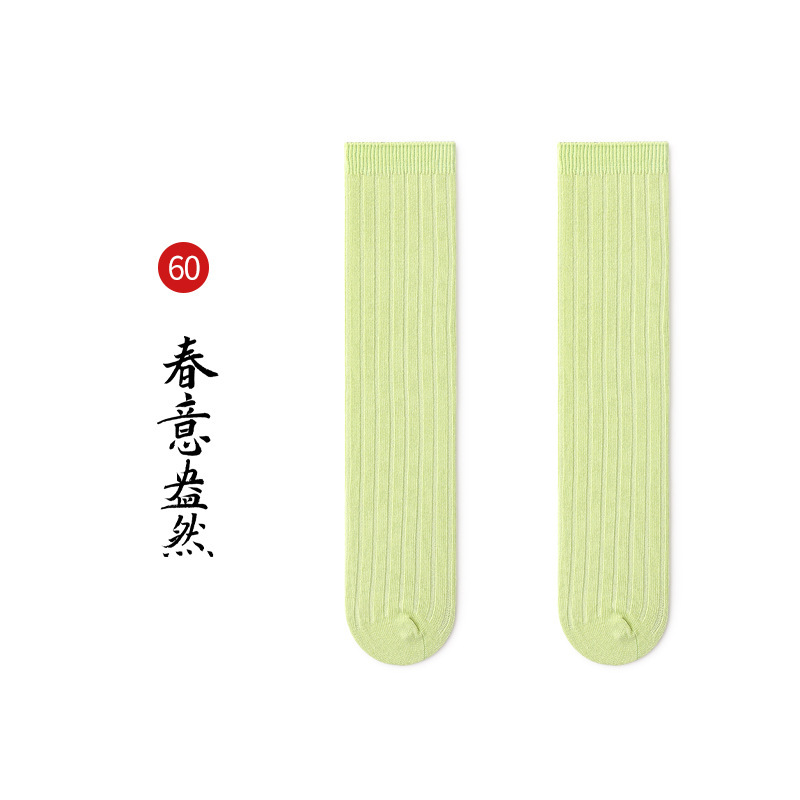 어린이 양말 봄과 가을 단색 피트 스트립 중간 길이 양말 한국 빈티지 스택 아기 스타킹 면 여아 양말