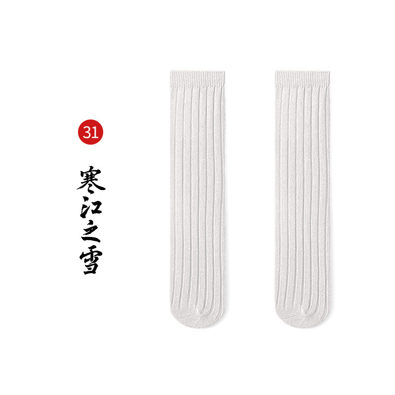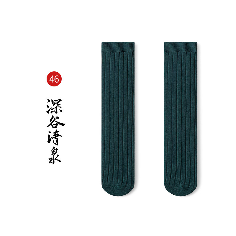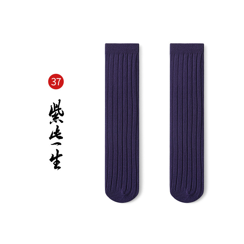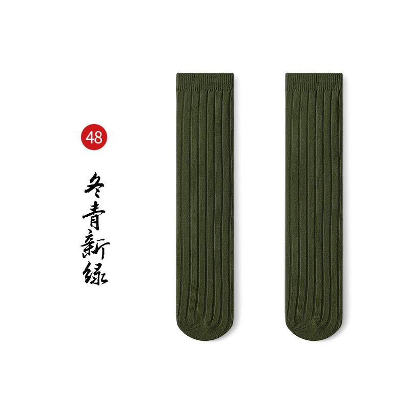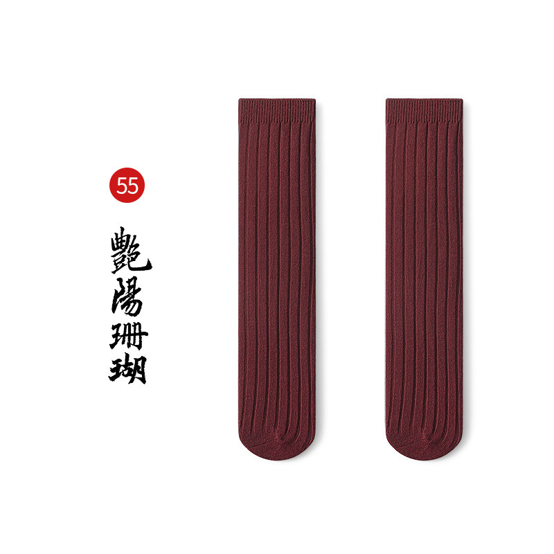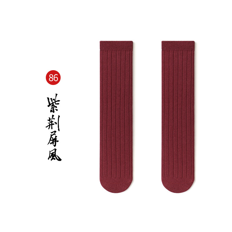어린이 양말 봄과 가을 단색 피트 스트립 중간 길이 양말 한국 빈티지 스택 아기 스타킹 면 여아 양말