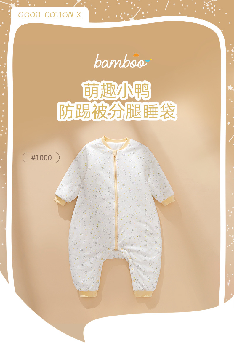 흰색 배경의 작은 오리 어린이용 다리 분리형 침낭 A급 항균 1000호 면 아기 따뜻한 방한 이불스토어 가기