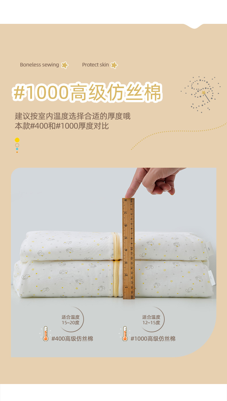 흰색 배경의 작은 오리 어린이용 다리 분리형 침낭 A급 항균 1000호 면 아기 따뜻한 방한 이불
